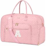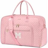 حقائب سفر واق من المطر لعطلة نهاية الأسبوع للنساء - حقيبة عطلة نهاية الأسبوع للنساء مع حجرة للأحذية يمكن حملها طوال الليل مع حقيبة أدوات الزينة وحقائب من القماش الخشن وجيب مبلل لحقائب المستشفى الرياضية للعمل والتوصيل، باللون الوردي