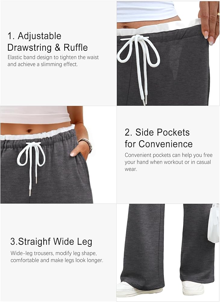Features: The wide leg sweat pants for womens low rise and wide leg design. drawstring waistband make you easy to adjust the tightness, joggers for women with pockets on both sides allow for convenient storage of small personal items