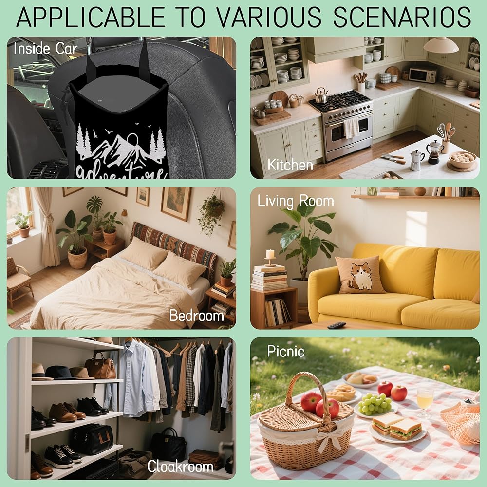 سهلة التنظيف وتوفير المساحة: التنظيف بسيط، فقط قم بتفريغ سلة المهملات ومسحها أو شطفها بسرعة. يمكن طيها بحجم كف اليد عند عدم استخدامها وحشوها في الحقيبة الجانبية للباب أو صندوق مسند الذراع