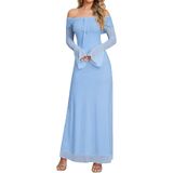 السمات: فساتين بدون أكتاف للسيدات، فساتين ضيقة للنساء، مقاس نحيف، فساتين نسائية طويلة الأكمام، فستان طويل رسمي للسيدات، خصر عالٍ، فستان شبكي للنساء