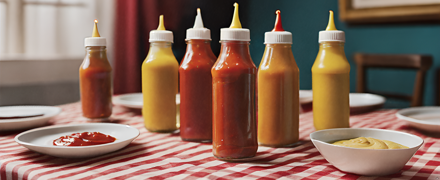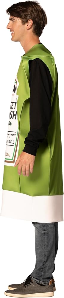 يشتمل على: يتضمن زي المجموعة هذا ثلاث سترات إسفنجية على شكل زجاجة ضغط كاتشب وخردل وريليش. تتم طباعة كل سترة على الجهة الأمامية فقط على غرار المنتج الفعلي. لا يتم تضمين القمصان والسراويل.