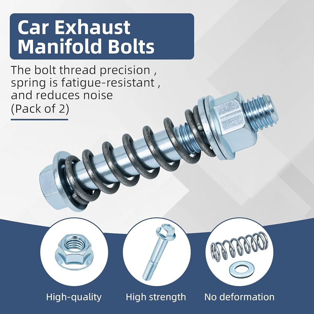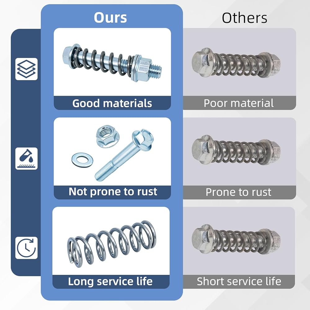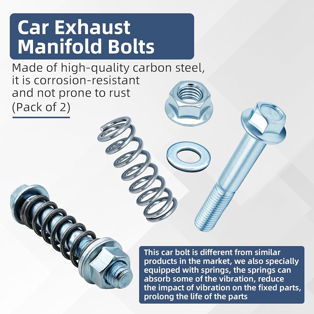 ✅ Precise fit and easy installation - M10x1.5mm thread pitch, with a total bolt length of 2.9 inches (threaded portion is 1.35 inches). The complete set includes 2 bolts, 2 nuts, 2 washers, and 2 springs, allowing for direct replacement.