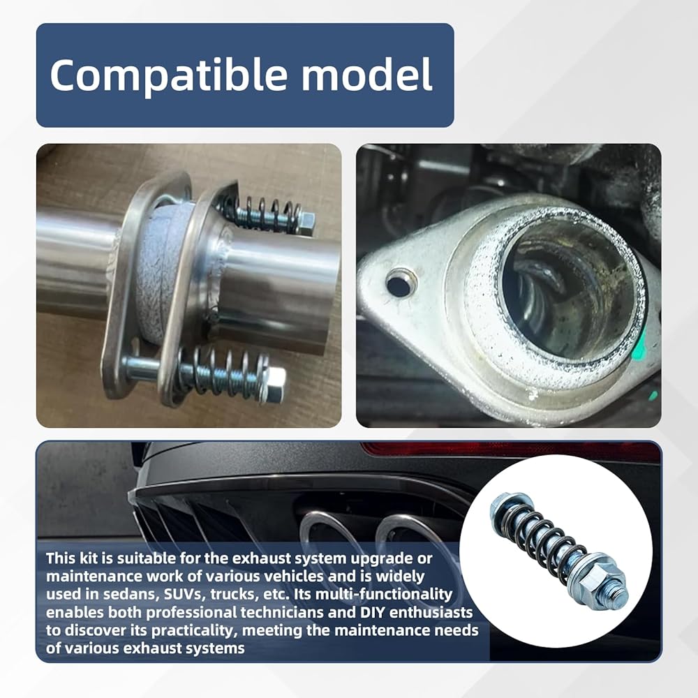 ✅ Advanced shock absorption technology - Integrated compression springs can absorb the vibrations of the exhaust system, reduce the pressure on components, and extend the lifespan of gaskets by minimizing loosening caused by engine vibrations.