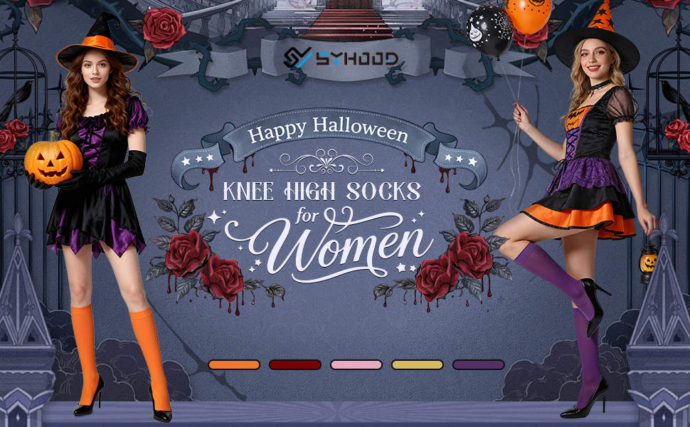 خيارات الألوان: جوارب الهالوين التي تصل إلى الركبة تأتي في مجموعة متنوعة من الألوان، مما يسمح لك بالتعبير عن أسلوبك الشخصي؛ قم بمزجها ومطابقتها مع ملابسك أو استخدمها لإضافة لمسة من الألوان إلى مجموعتك