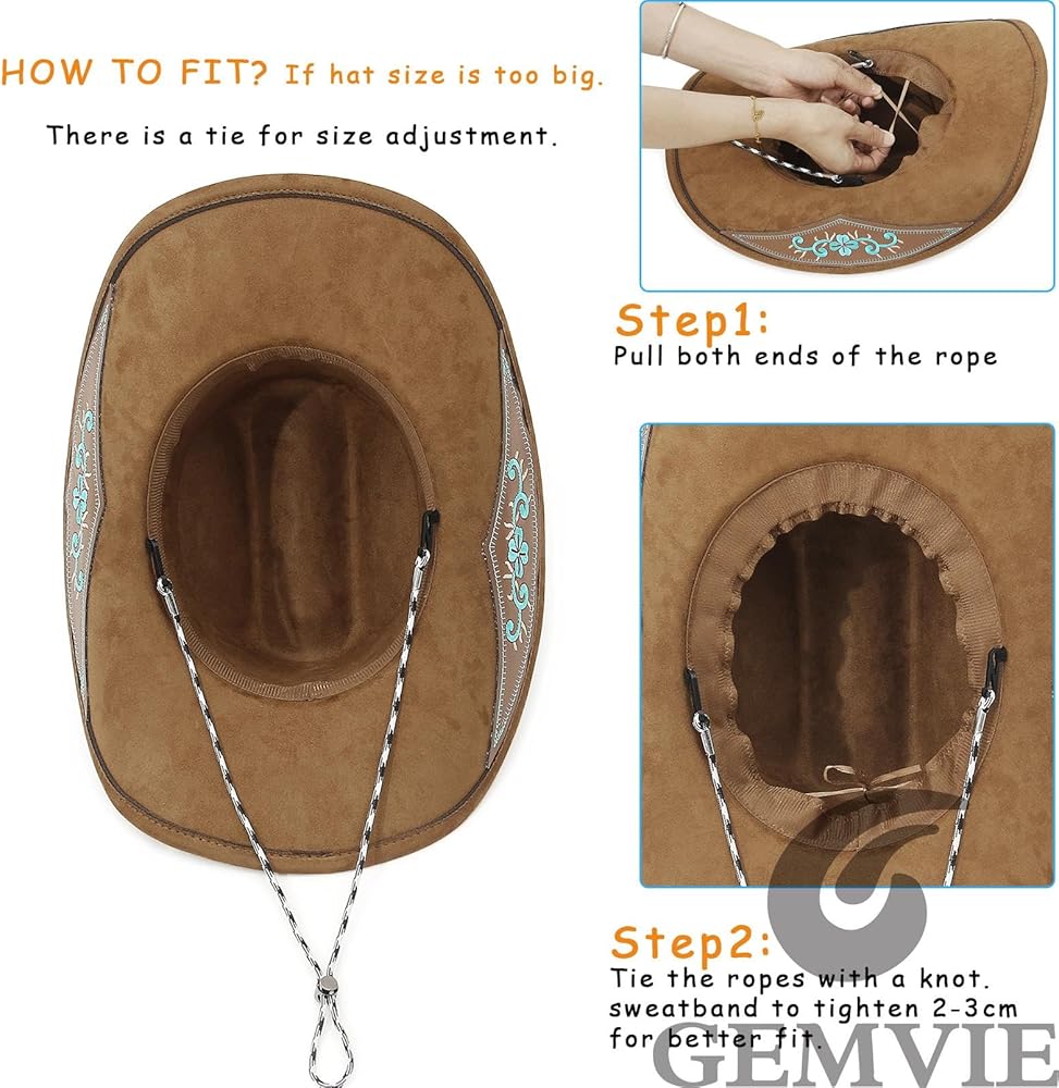 1、المادة: قبعة راعية البقر النسائية الخاصة بنا مصنوعة من جلد سويدي خاص (البوليستر)، مما يجعل القبعة ناعمة الملمس وسلسة وخفيفة الملمس. تنفس ومريحة.