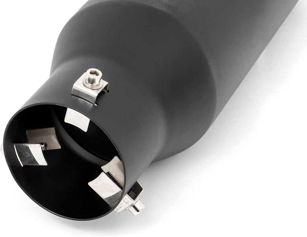 Give your truck the finishing touch with Rough Country's Black Exhaust Tip w/ “RC” logo! This stylish yet durable exhaust tip gives your truck an aggressive look with an easy, 100% bolt-on installation procedure that takes no-time flat! Whether you're wanting to ditch the chrome for a blacked out look or just want a unique, easy upgrade, Rough Country's Flat Black Exhaust Tip is the perfect solution for your truck. With a 304 stainless steel construction and high-temperature resistant flat-black powder coat, each Rough Country exhaust tip is designed to withstand the elements for a long lifespan of good looks. Rough Country's Flat Black Exhaust Tip features an easy clap installation that fits 2.5in - 3in pipes and installs lightning fast with no cutting, welding, or drilling required!