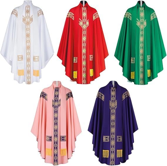 Adult Mens Elegant Catholic Priest Chasubles - 5 Color Selections for Liturgical Use