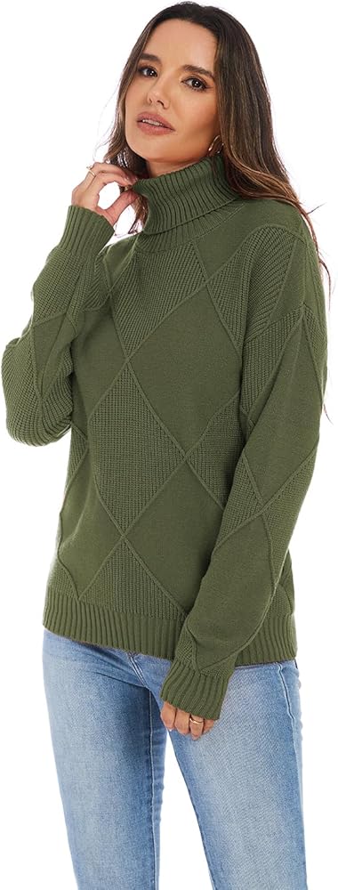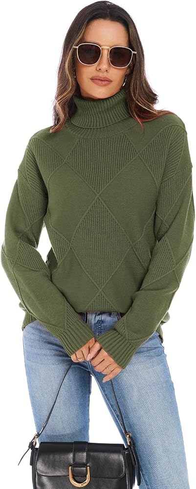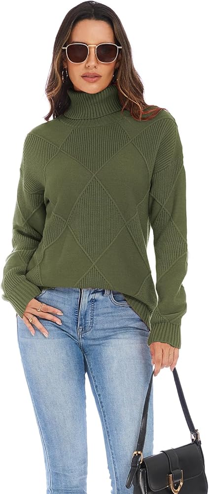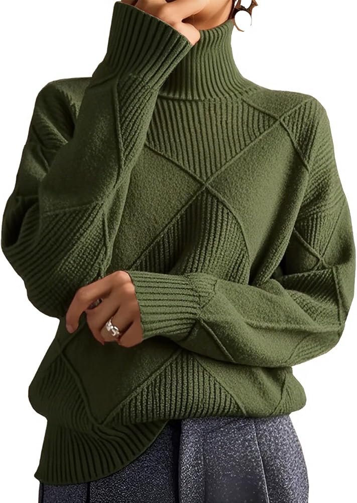بلوفر نسائي كاجوال برقبة عالية، يتميز بتصميم محبوك عتيق وصورة ظلية مستقيمة. مصنوع من نسيج محبوك ناعم ومريح ومتوسط الوزن