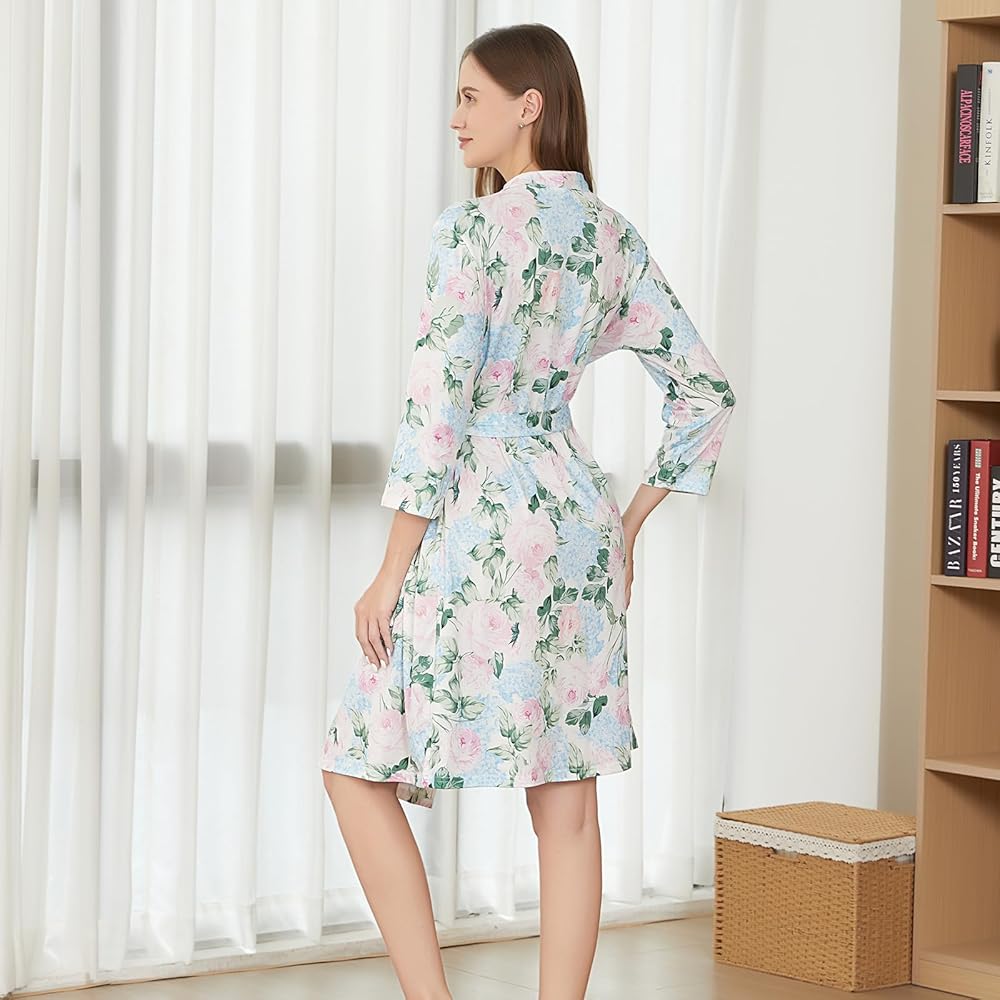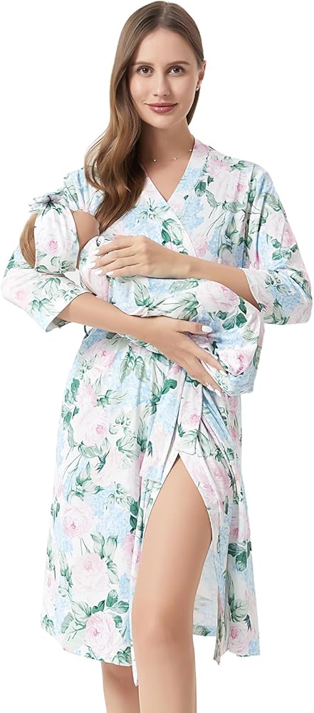 Galabloomer Maternity Robe and Baby Receiving Blanket , Matching mmy Labor Delivery Robe and Swaddle Set