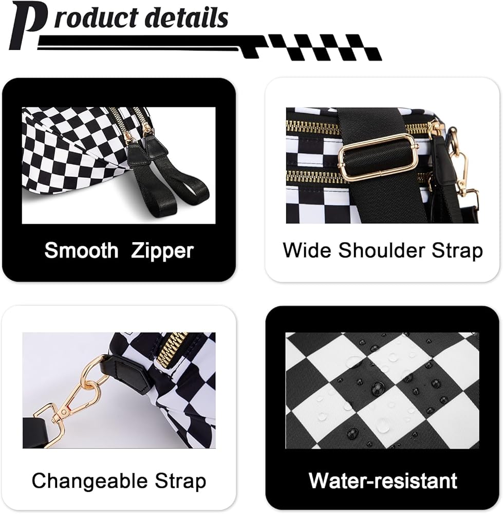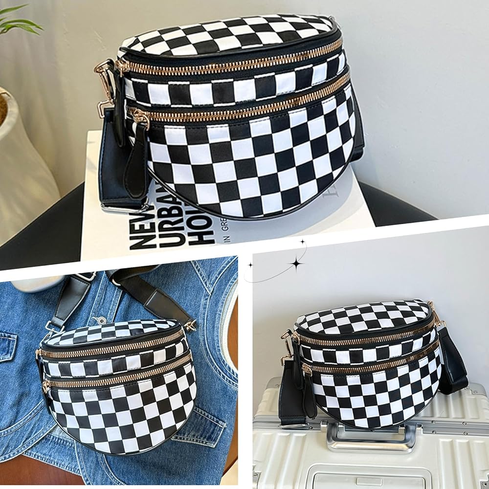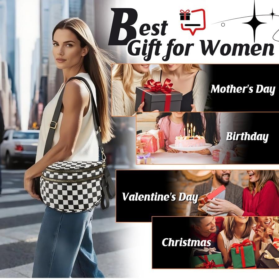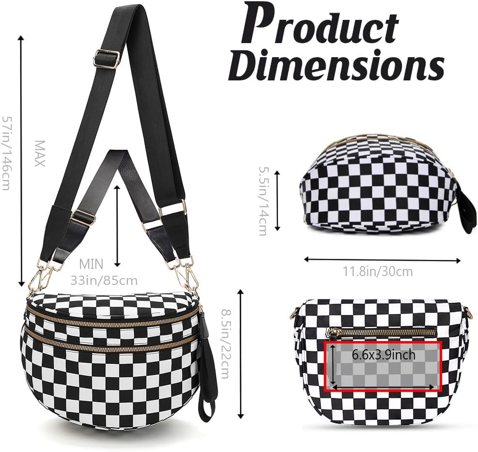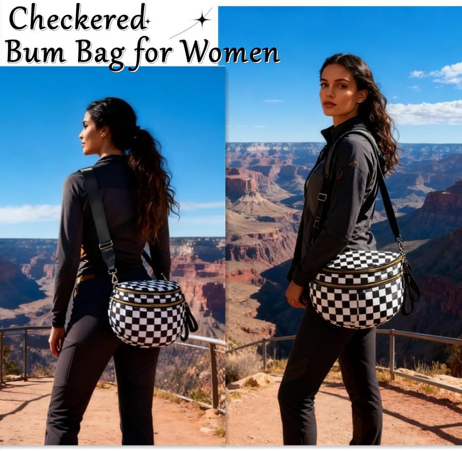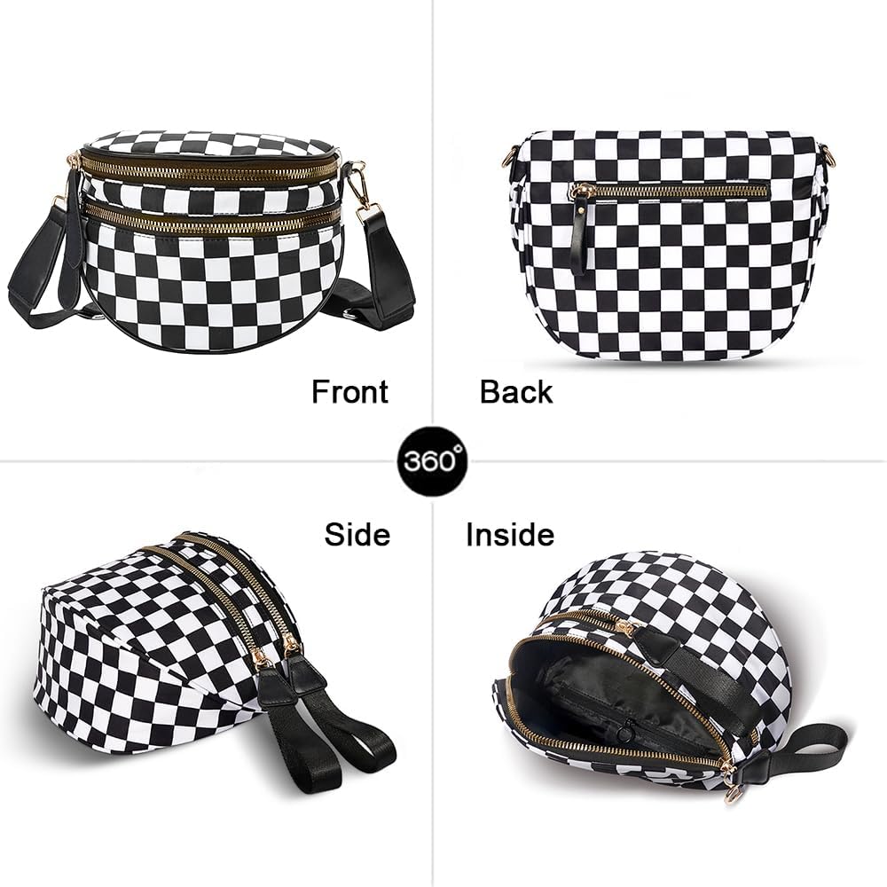 🍸 أنماط ارتداء متعددة - حقيبة فاني ذات مربعات قابلة للتكيف مع أي مناسبة، يمكن تحويل حقائب الخصر هذه للنساء بسهولة إلى حقيبة كروس أو حقيبة كتف أو حقيبة خصر أو حقيبة توزيع للأم أو حقيبة فاني أو حقيبة كتف أو حقيبة صدر بفضل حزامها القابل للتعديل والإزالة. تصميم مربعات 2025 يكمل مختلف الملابس بسلاسة.