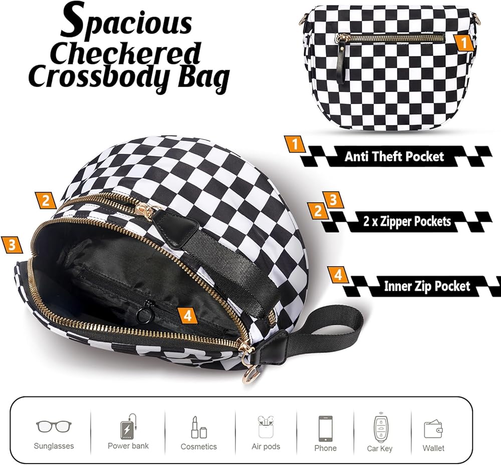 ✔️ نايلون متين ومقاوم للماء - حقيبة كروس من النايلون مصنوعة من نسيج عالي الجودة مقاوم للماء، وتوفر هذه الحقيبة ذات المربعات مقاومة استثنائية للارتداء والاستخدام اليومي. كما أن حقيبة التوزيع ذات سطح سهل التنظيف وتحافظ على مظهر جديد، مما يجعلها عملية وتدوم طويلاً.