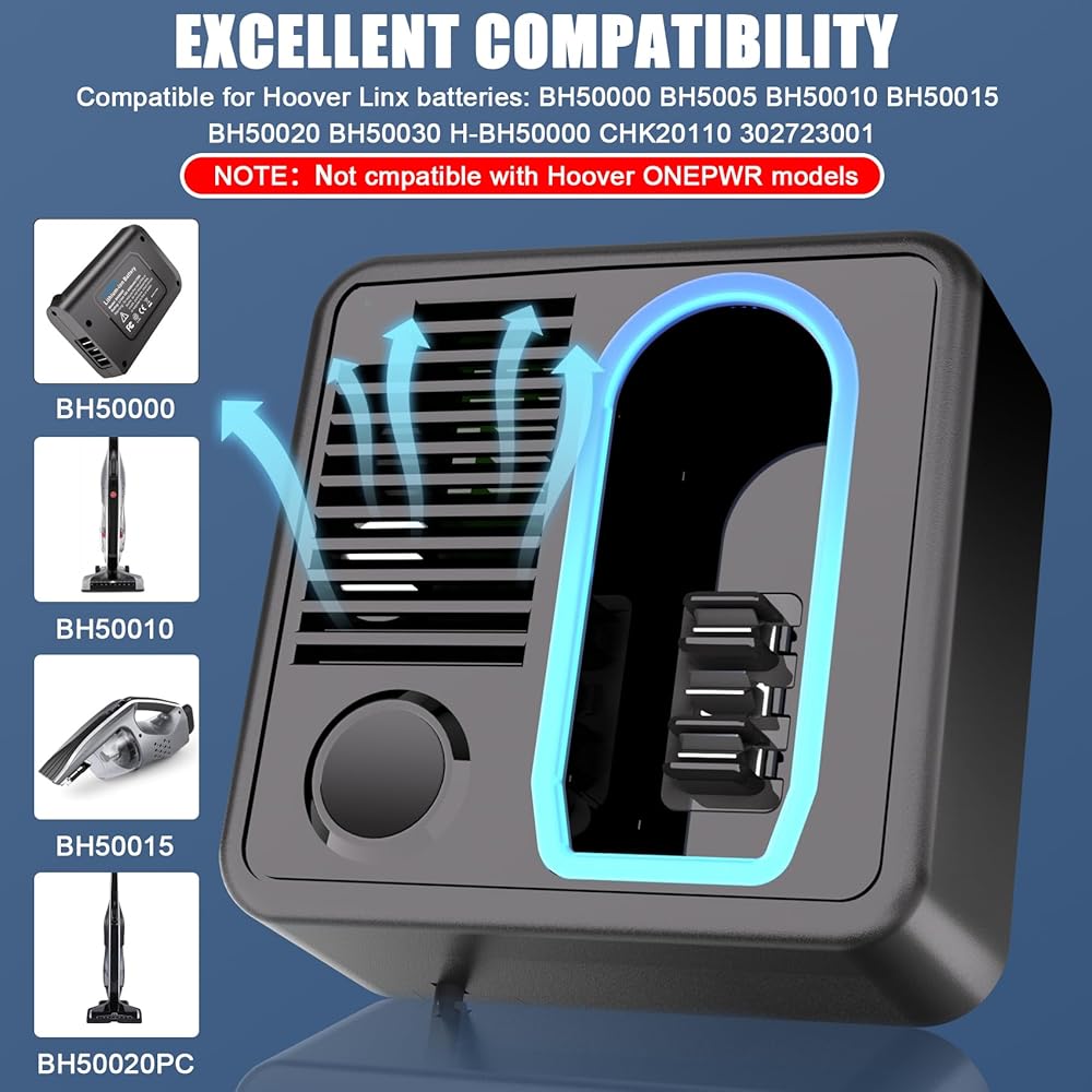 شاحن بطارية JYJZPB لشاحن بطارية Hoover Linx 18V-22V متوافق مع Hoover Linx BH50000 BH50010 BH50015 302723001 BH50020 302736001 مكنسة كهربائية للبطارية (البطاريات غير متضمنة)