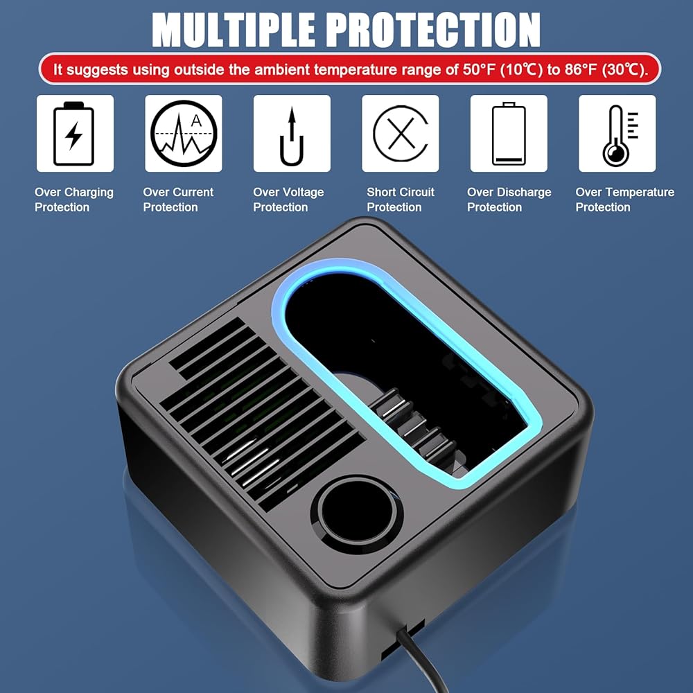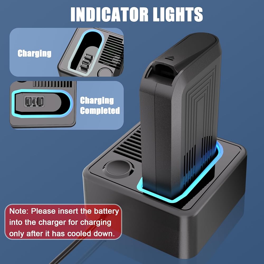• 【شحن سريع】مجهز بشحن سريع متقدم، مع ضوء مؤشر LED واضح يوضح حالة شحن البطارية. بعد الاستخدام، يوصى بترك البطارية تبرد قبل إعادة شحنها.