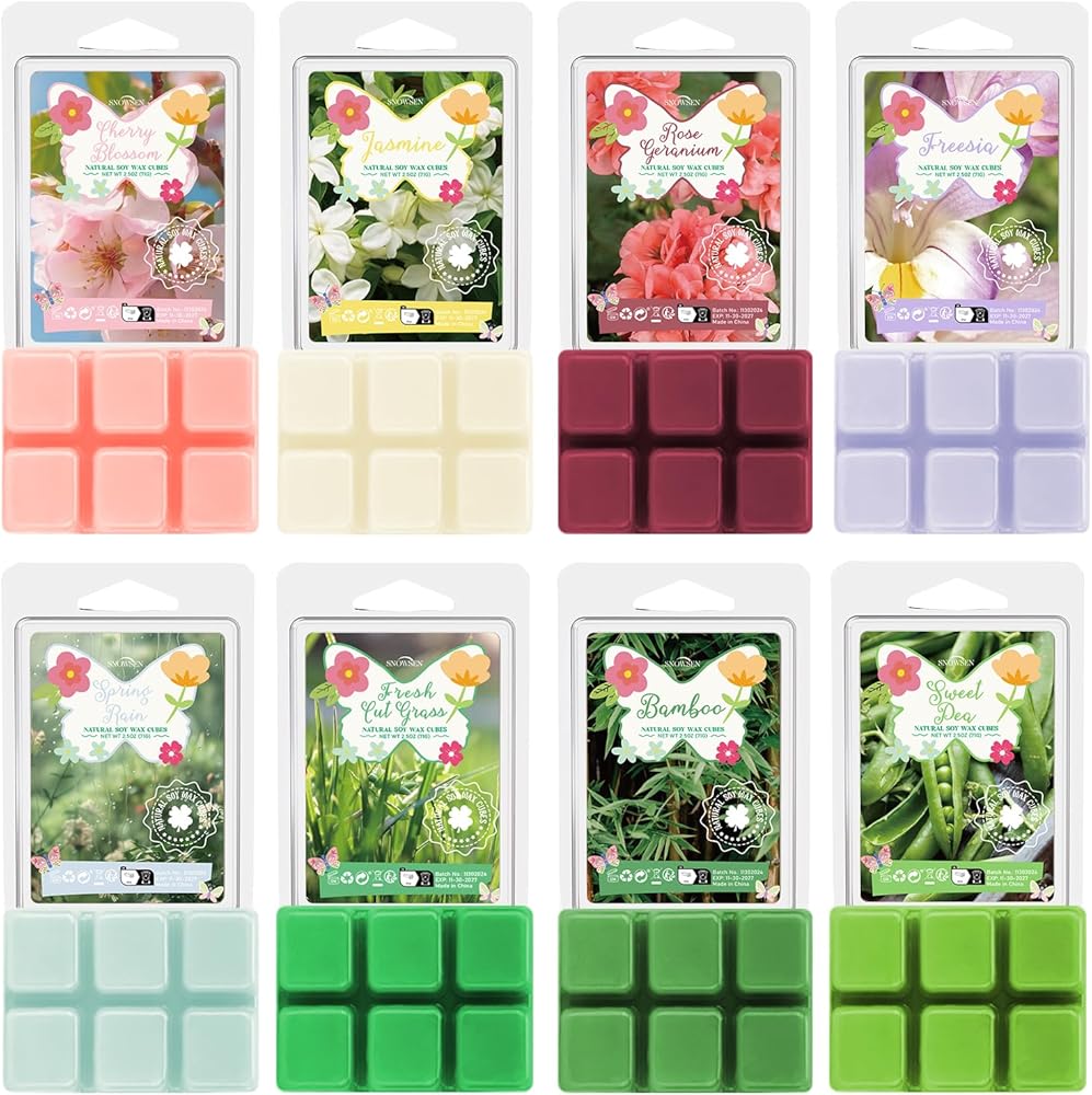 شمع الصويا الفاخر: مصنوع من شمع الصويا الطبيعي، يوفر ذوبان الشمع هذا حرقًا أنظف ويدوم لفترة أطول مقارنة بالشمع التقليدي. استمتع ببديل خالٍ من اللهب والدخان للشموع، مما يوفر رائحة آمنة وممتعة في غرفة المعيشة أو غرفة النوم أو المطبخ.