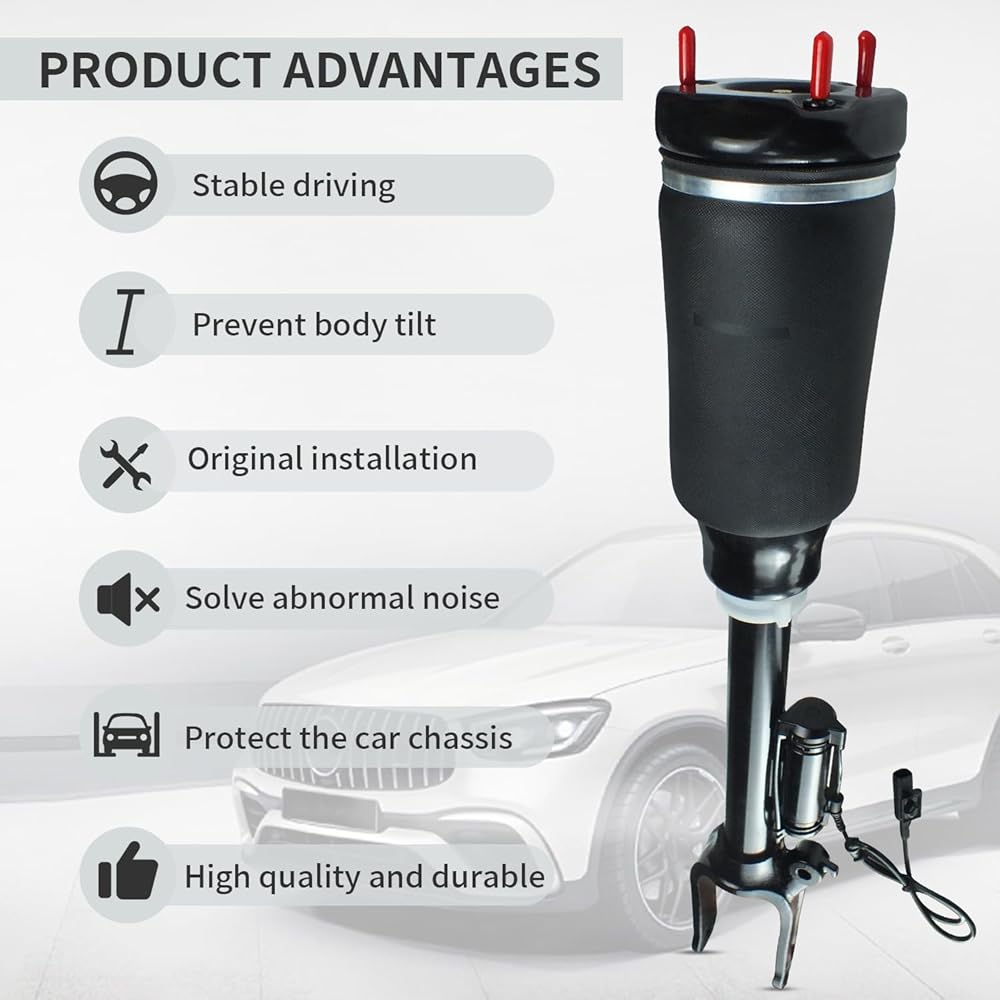 • [الثبات والأمان]: يقلل ممتص الصدمات هذا من الضوضاء والاهتزاز، ويستعيد امتصاص الصدمات. من خلال الطريق الوعر أو المنعطف، تحسن الاستقرار بشكل ملحوظ. بالإضافة إلى ذلك، فإنه سيسرع من تخفيف اهتزاز الإطار والجسم لتحسين راحة ركوب السيارة، وتحسين مشكلات الكبح والتوجيه وجعل القيادة أكثر راحة واقتصادية وأمانًا. علاوة على ذلك، تساعد الصدمات على إطالة عمر أجزاء وإطارات نظام التعليق الهوائي