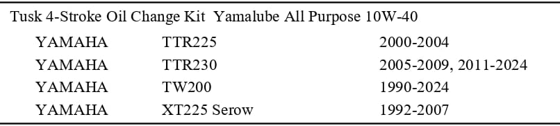 The Tusk Oil Change Kit comes with the basic items needed to change the oil in your motorcycle, ATV, or UTV. Each kit comes with enough bottles of motor oil (and in some cases transmission oil) to get the job done. The kit also includes a Tusk oil filter, disposable funnel, and crush washer for your drain bolt. Each kit is specific to the vehicle you order it for to ensure you get enough volume of oil, the correct weight of oil, the correct Tusk oil filter, and the correct crush washer for your drain bolt. This kit takes the guess work out of ordering the essential items needed for your next oil change.