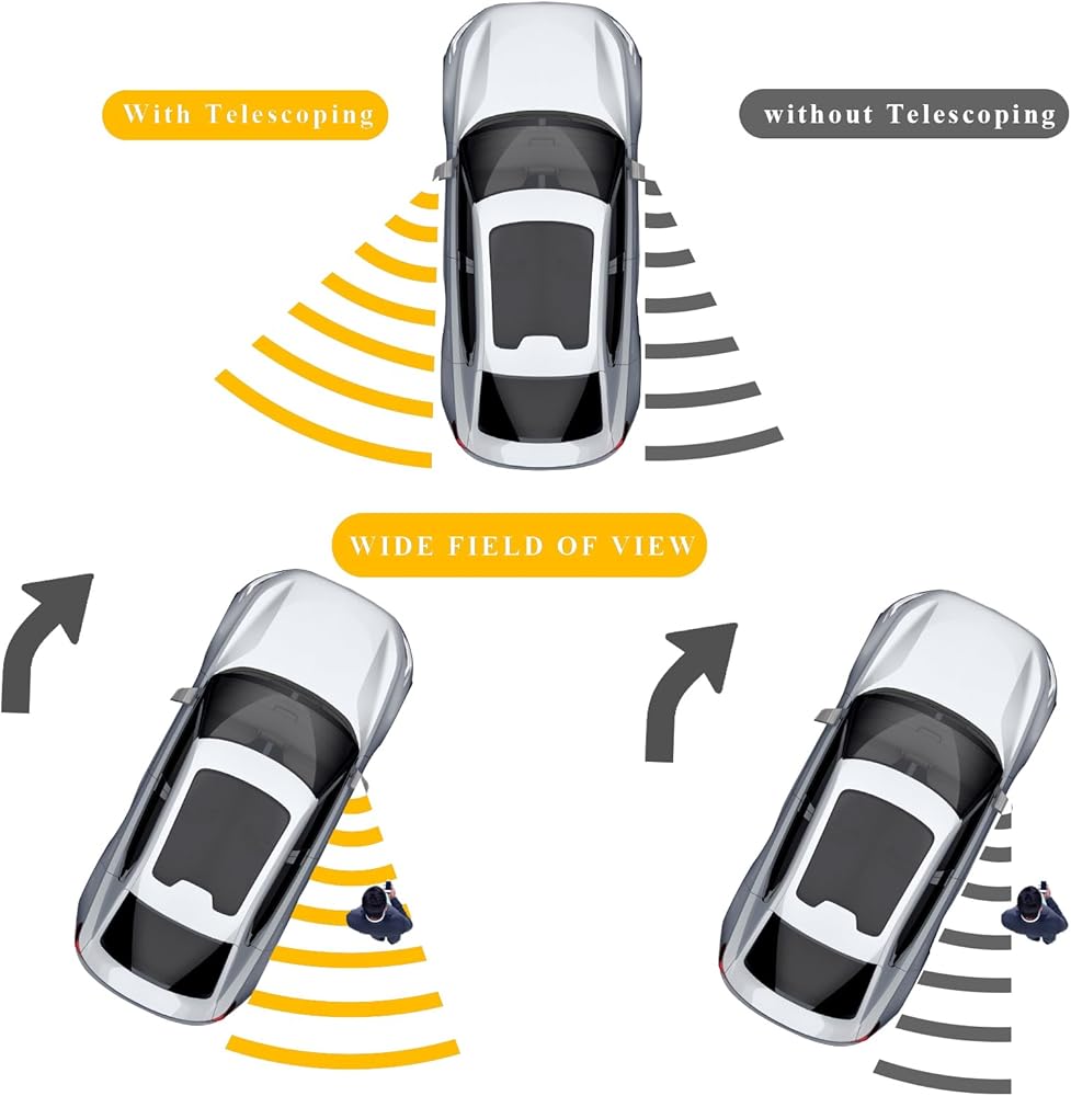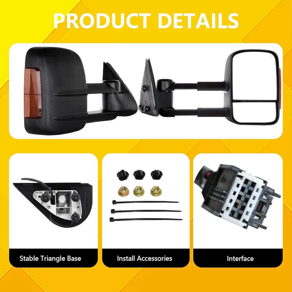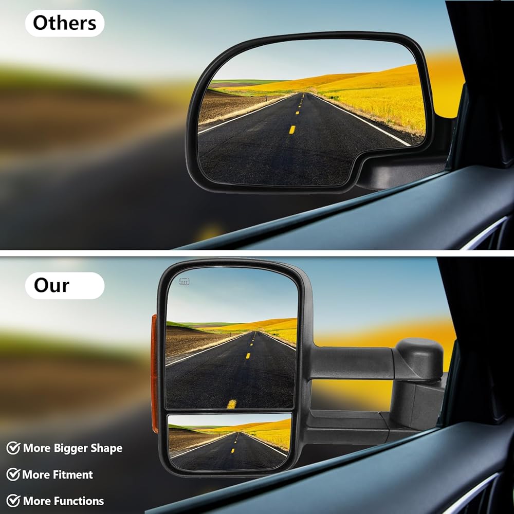 【تقليل البقع العمياء】: يمنع السخان المطور ضباب المرآة في الطقس البارد، مما يضمن رؤية واضحة على طول الطريق. يوفر الزجاج المسطح القابل للتعديل كهربائيًا والزجاج المحدب يدويًا وجهات نظر مختلفة للقيادة، بينما تعمل الخيارات القابلة للتمديد والطي يدويًا على توسيع الرؤية بشكل خاص حول المقطورات العريضة أو المركبات الترفيهية.