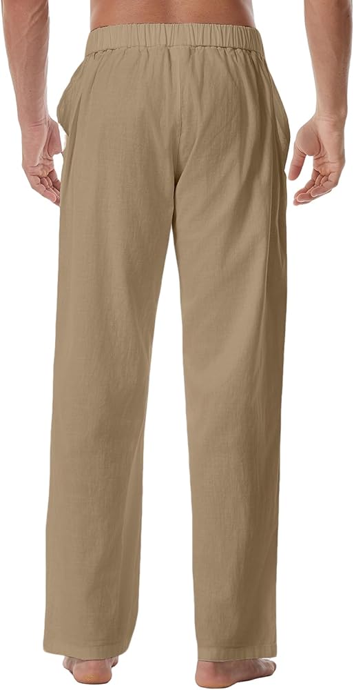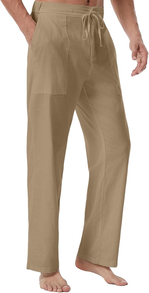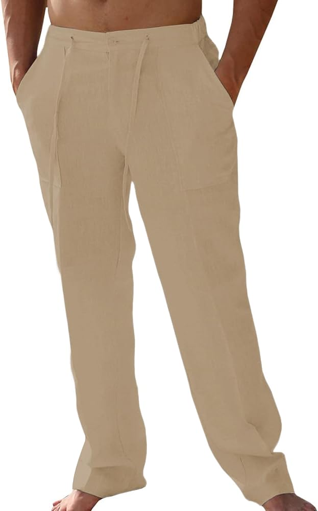 مظهر كاجوال: تم تصميم السراويل الكتانية للرجال بقصة فضفاضة، مما يوفر الراحة طوال اليوم أثناء نزهاتك غير الرسمية. مزودة بجيبين جانبيين عميقين، توفر سراويل الشاطئ للرجال مساحة واسعة لتخزين هاتفك أو مفاتيحك أو بطاقاتك بشكل آمن