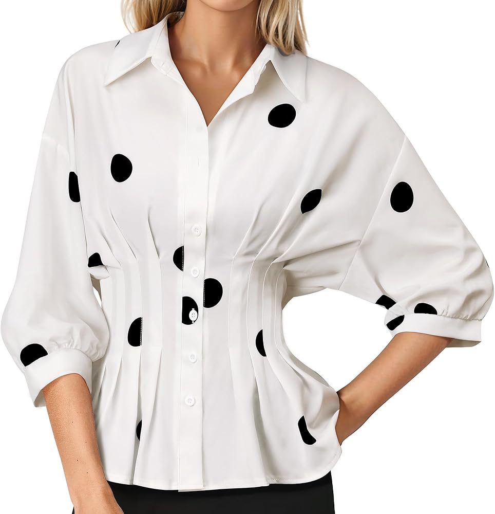 زر سفلي مع ياقة طية صدر السترة: زر مصقول سفلي من الأمام مع ياقة نظيفة تزيد من مظهر ملابس العمل الخاصة بك. من السهل وضعها في البنطلونات أو التنانير الضيقة.