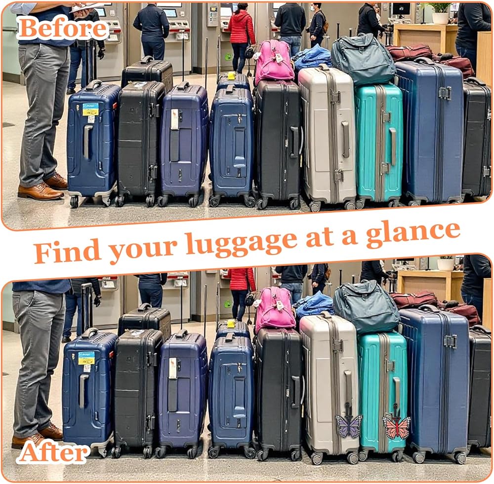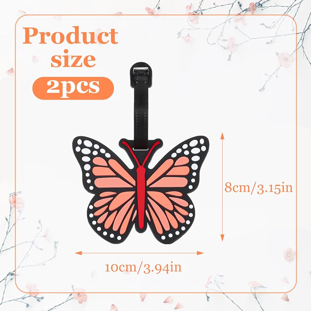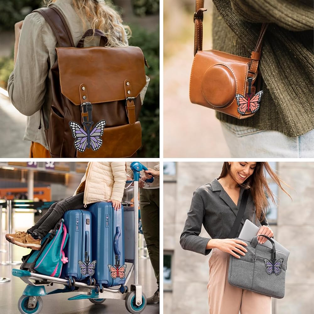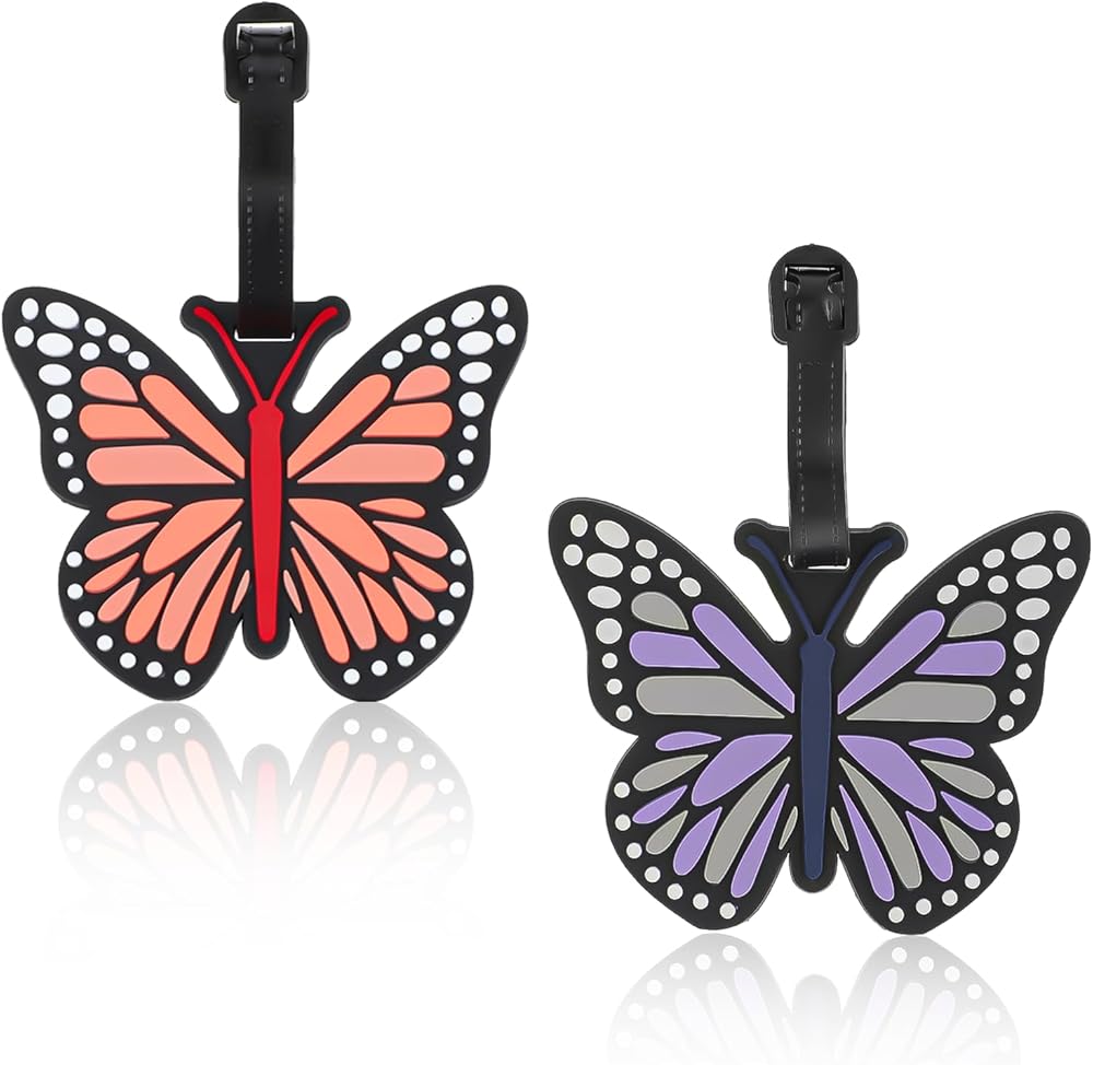 【Vibrant Butterfly Design】The 2pcs eye-catching butterfly-shaped luggage tags feature a bold purple hue and intricate detailing, adding a playful yet elegant touch to suitcases, backpacks, or duffel bags(10x8 cm / 3.94x3.15 in). Their unique design helps your luggage stand out in crowded baggage claims, reducing confusion while reflecting your personal style.