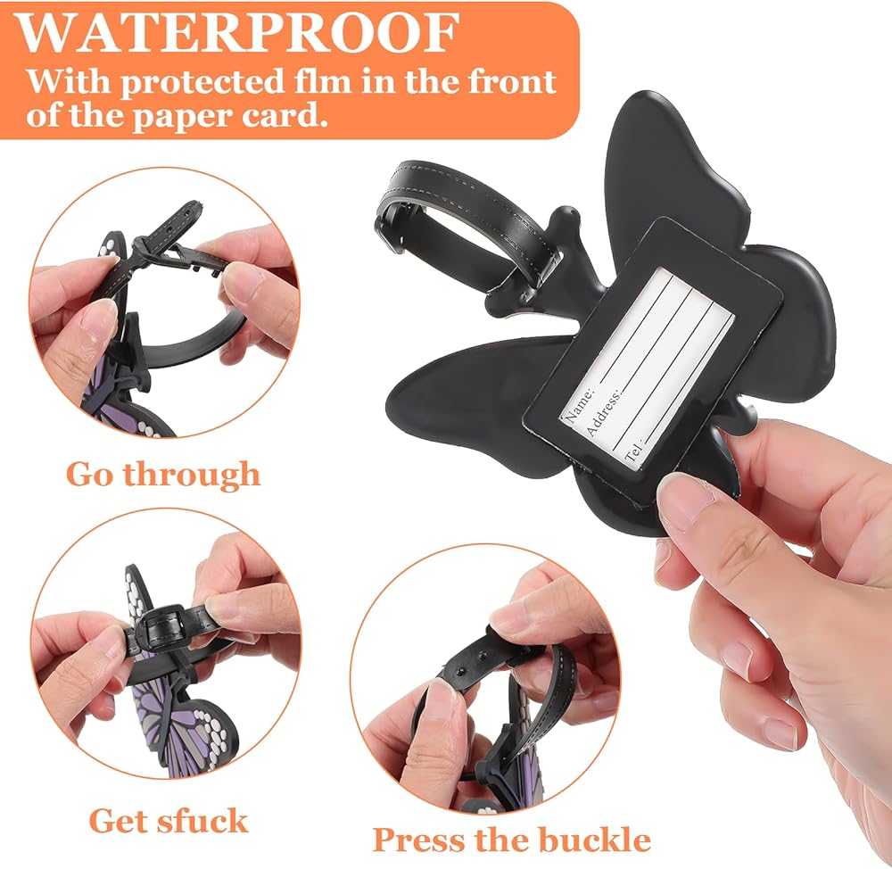 【Quick Identification】A dedicated writable panel of the silicone luggage tag lets you personalize the tags with your name or contact details, streamlining luggage retrieval. The vivid purple color and butterfly silhouette create instant visual recognition, minimizing the risk of mix-ups at airports or hotels.