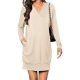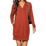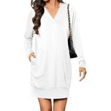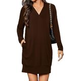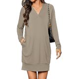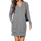 التصميم: فستان بقلنسوة برقبة على شكل حرف V للنساء، سويت شيرت كبير الحجم مع جيبين جانبيين، قماش مطاطي قليلاً، فستان عطلة بأكمام طويلة، فستان كاجوال بطول فوق الركبة، مثالي لملابس الخريف والشتاء. انتبه: يمكن غسله في الغسالة بالماء البارد مع الألوان المفضلة؛ يوضع بشكل مسطح ليجف؛ يُكوى على البارد إذا لزم الأمر؛ لا تستعمل مبيض