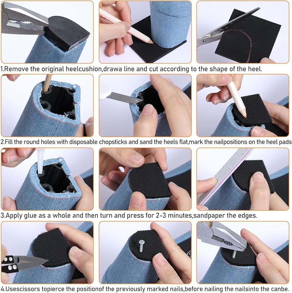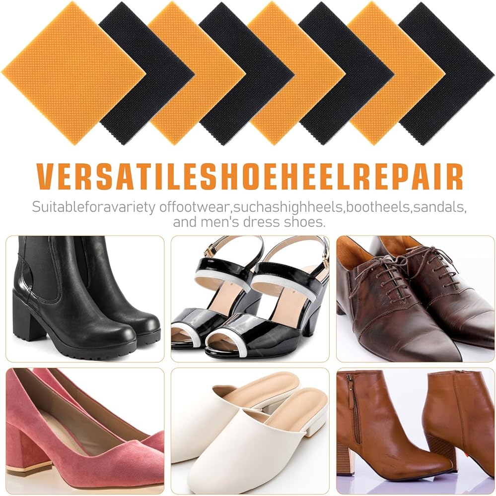 Heel Repair Kit: You'll receive eight rubber heel patches. Use these protective rubber patches to repair worn heels and prevent further damage. While glue-free, they easily apply with shoe glue, making them ideal for repairing and reinforcing shoes. Perfect for those beloved shoes you just can't bear to throw away, these patches restore their functionality and style in minutes.