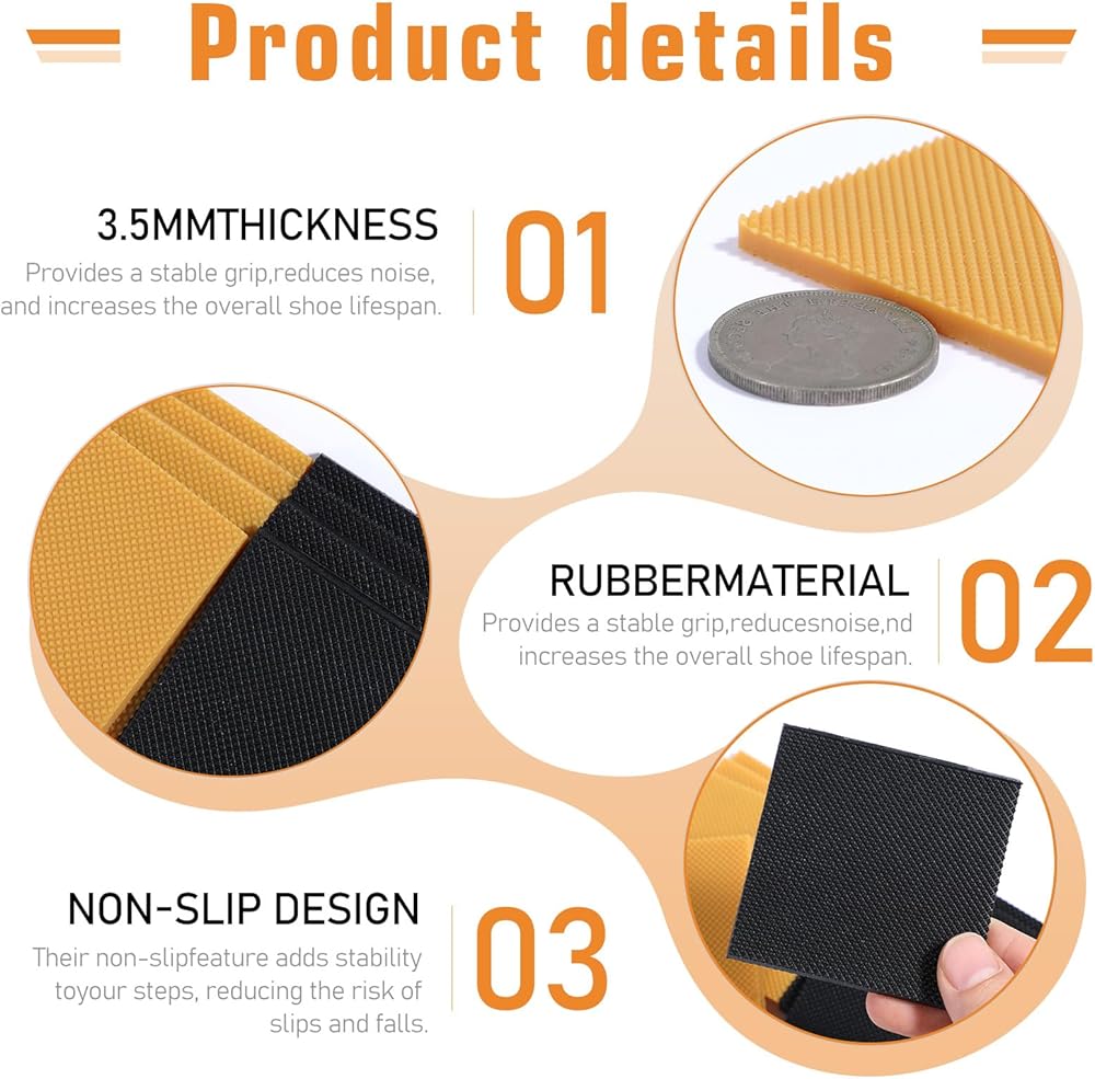 Superior Grip and Protection for Your High Heels: Extend the life of your favorite shoes with our premium rubber heel tabs. Their textured, non-slip surface provides excellent grip on both smooth and wet surfaces. The durable material not only prevents slipping but also protects the soles from wear, keeping your shoes looking like new. These tabs are perfect for stilettos, high heels, and boots, ensuring comfort and security with every step.