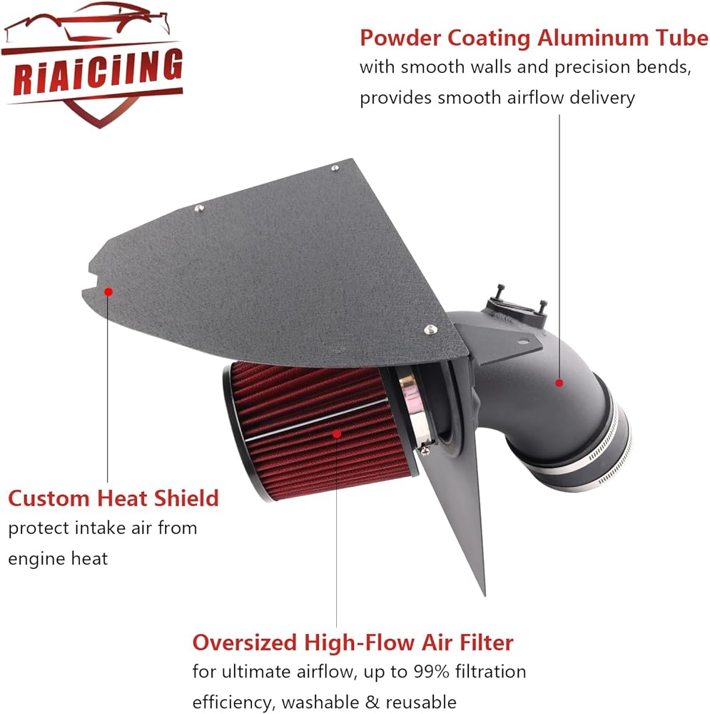 【مواد عالية الجودة】يتميز المدخول بأنبوب مدخل مطلي بمسحوق أسود ودرع حراري لحماية المدخول من حرارة المحرك، مما يضمن توصيل هواء أكثر برودة وأكثر كثافة إلى المحرك، وفلتر قابل للغسل وإعادة الاستخدام.