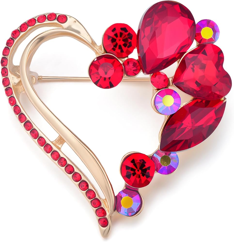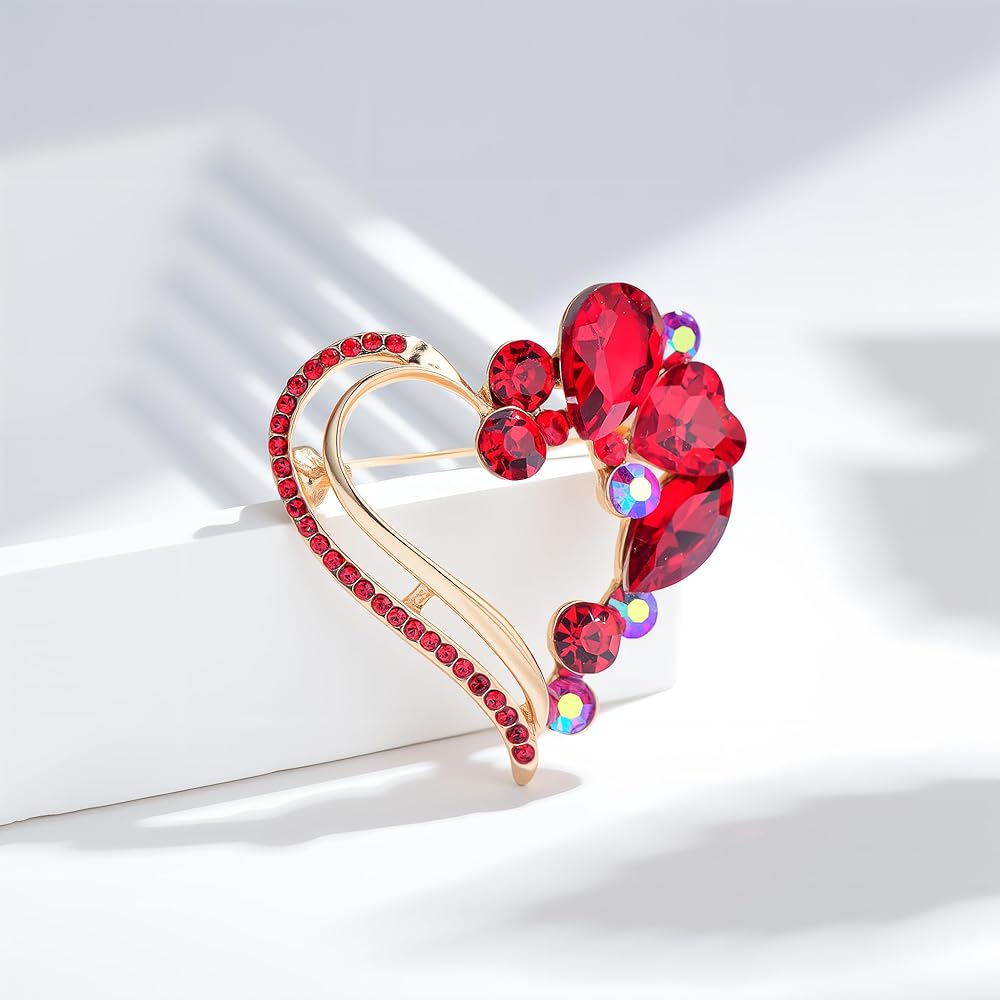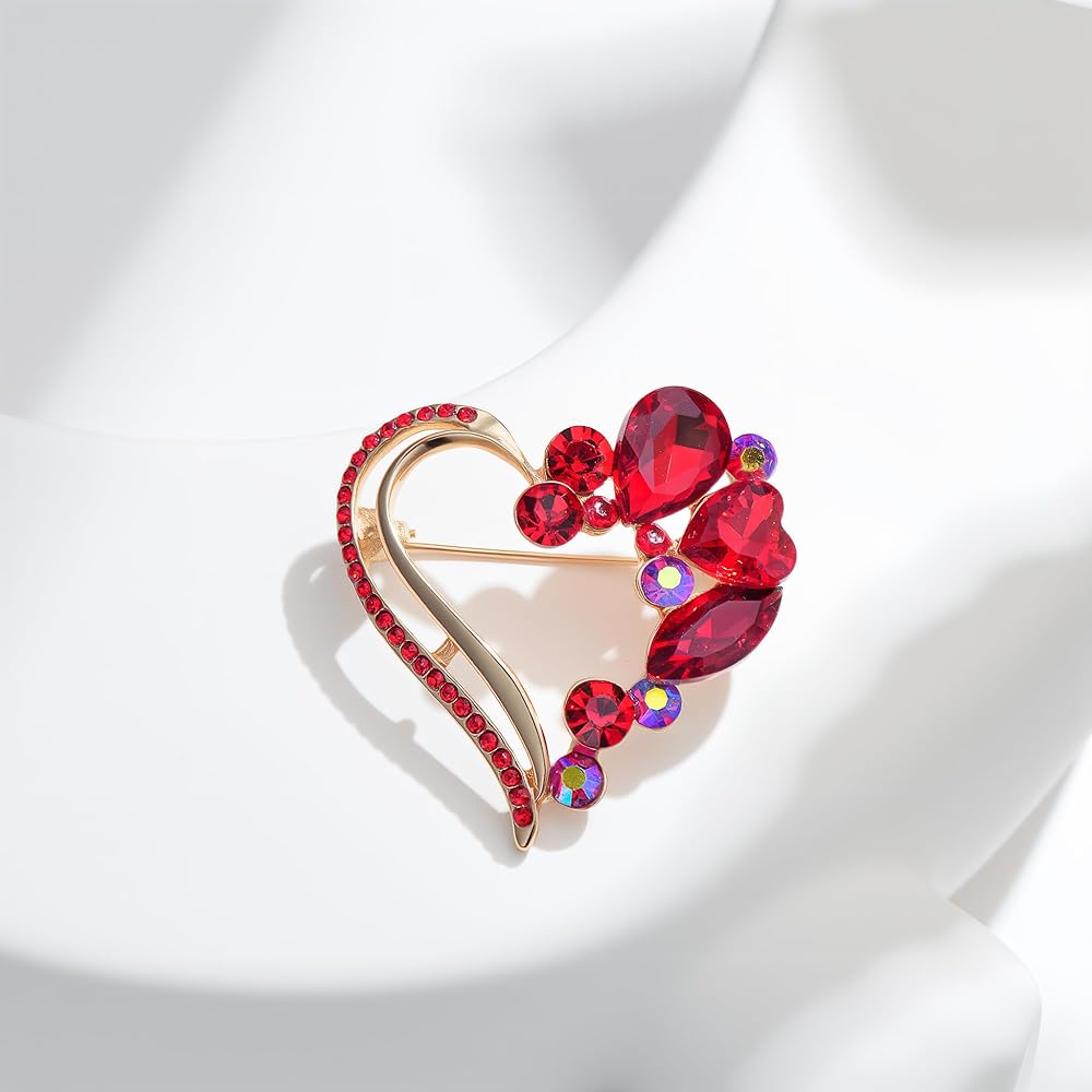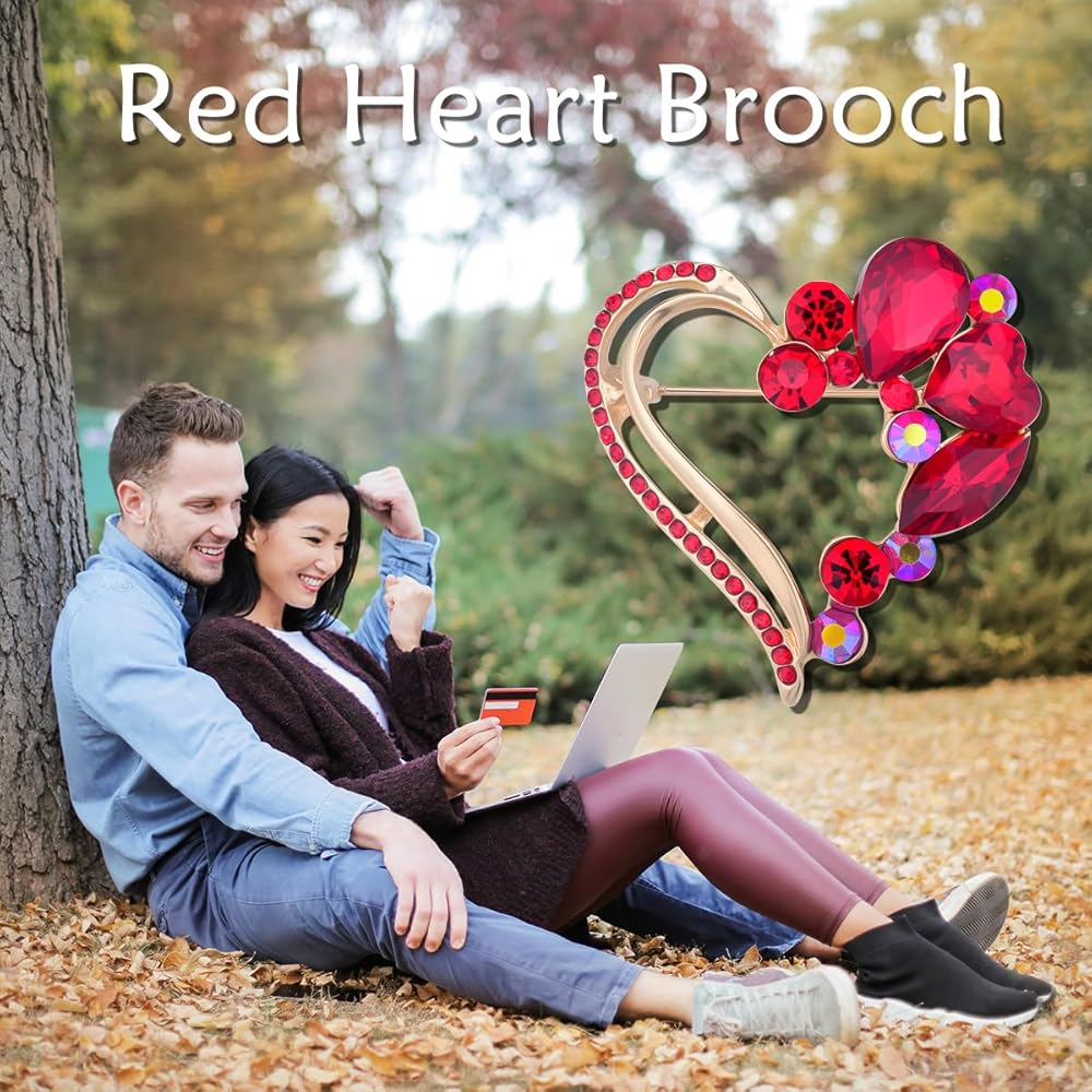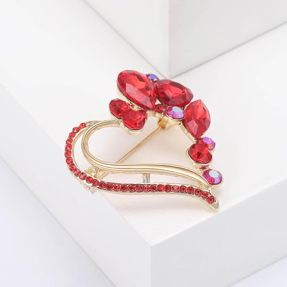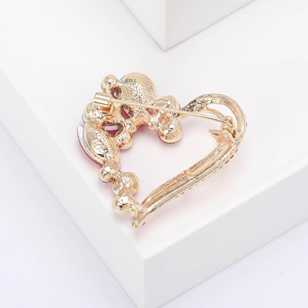 مواد فاخرة: بروش القلب الأحمر مصنوع من النحاس عالي الجودة، ومزين بالكريستال المتلألئ وحجر الراين.