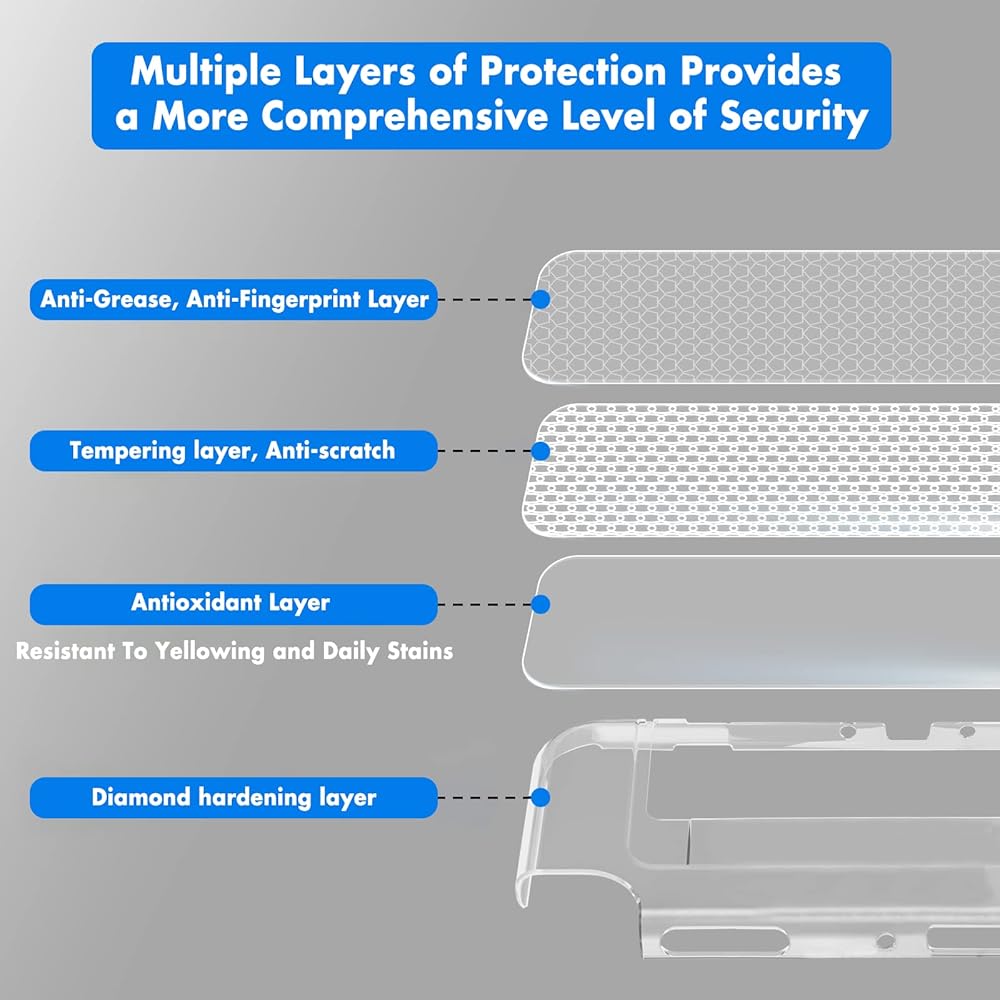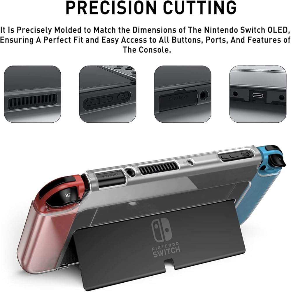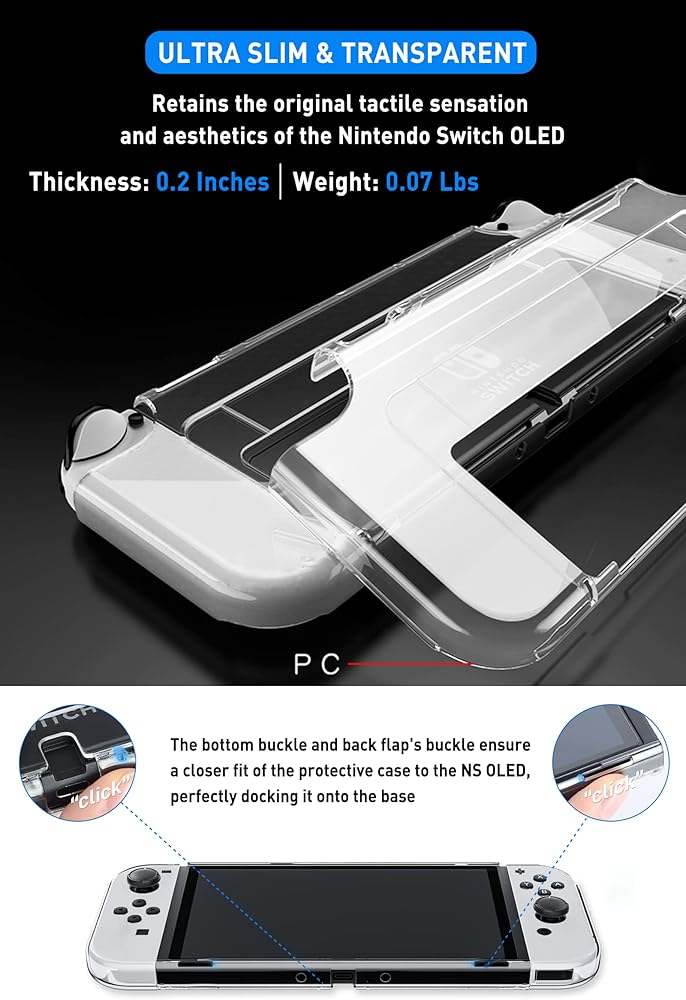 🕹️【تصميم خفيف الوزن ونحيف】الحافظة القابلة للإرساء لجهاز Nintendo Switch OLED 2021 مصنوعة من مادة البولي كربونات الشفافة، مما يجعلها نحيفة وخفيفة الوزن. يمكن فرك بصمات الأصابع الموجودة على العلبة أو تنعيمها باستخدام أنسجة مبللة نظيفة. بالإضافة إلى ذلك، يحتفظ الجسم الشفاف بالإحساس اللمسي الأصلي والجماليات لجهاز Nintendo Switch OLED.