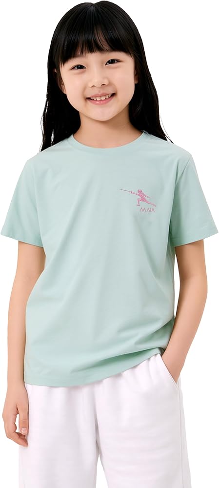 تي شيرت مطرز بالمبارزة للفتيات من KlothoMAIA - تي شيرت أخضر مع خياطة المبارزة الصغيرة باللون الوردي