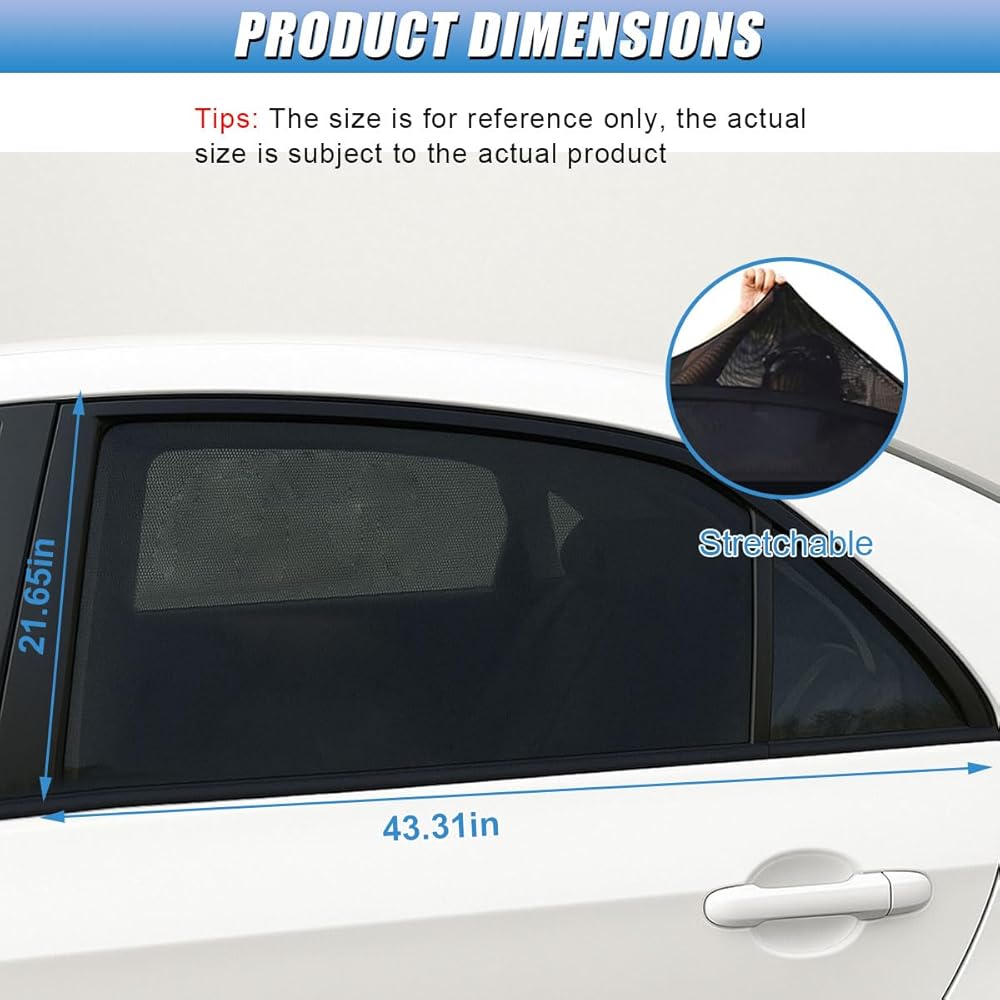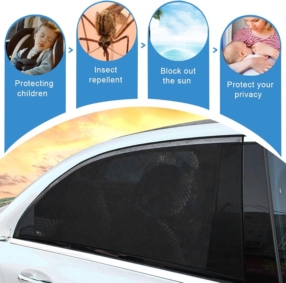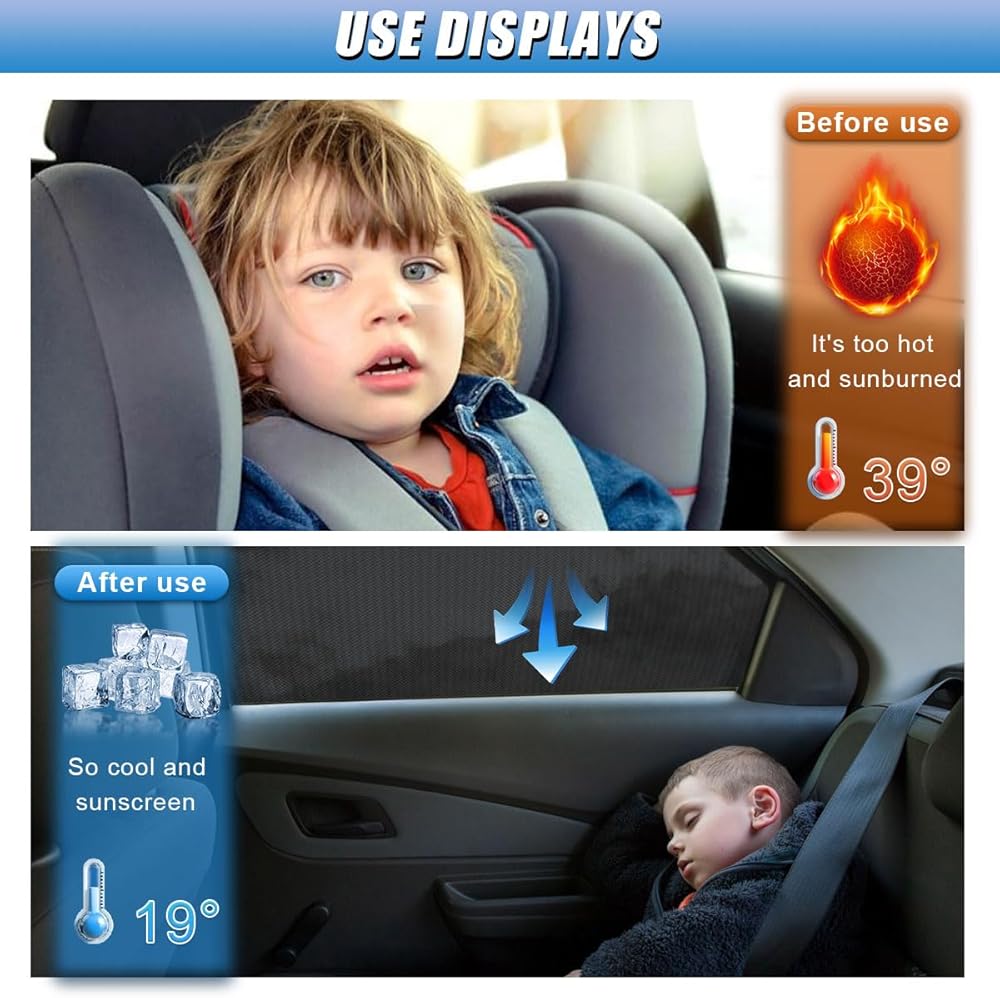 • 【Breatheable & Comfort】:This car window sunshade features a double-layer mesh design, ensuring air circulation inside the vehicle without affecting the movement of the windows, keeping the interior cool and comfortable at all times.