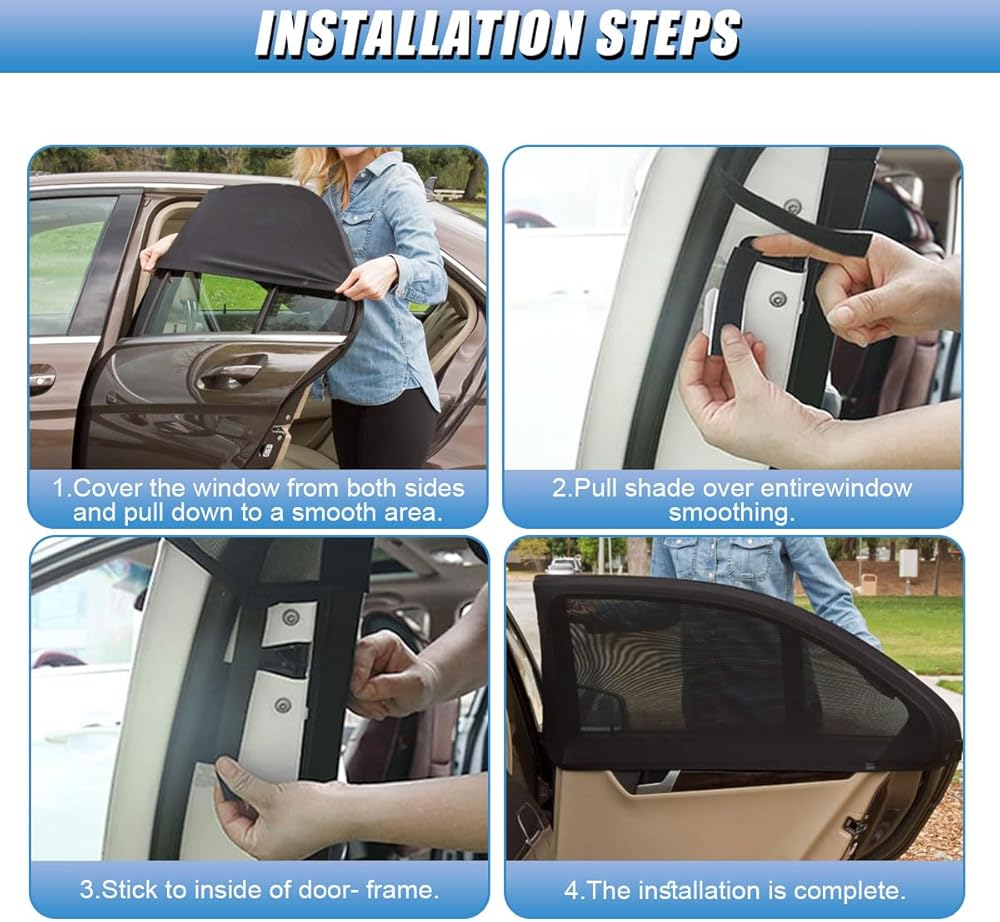 • 【Easy to Install】:This car window screen is easy and quick to install. Simply open the car door, then slip the sunshade directly over the window. Removal is equally convenient. When not in use, it can be easily folded into a compact size for storage and portability.