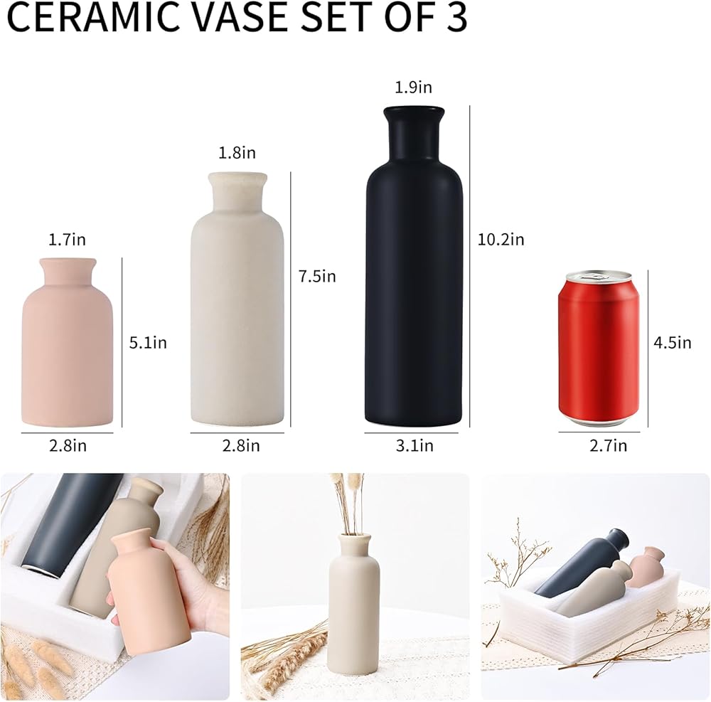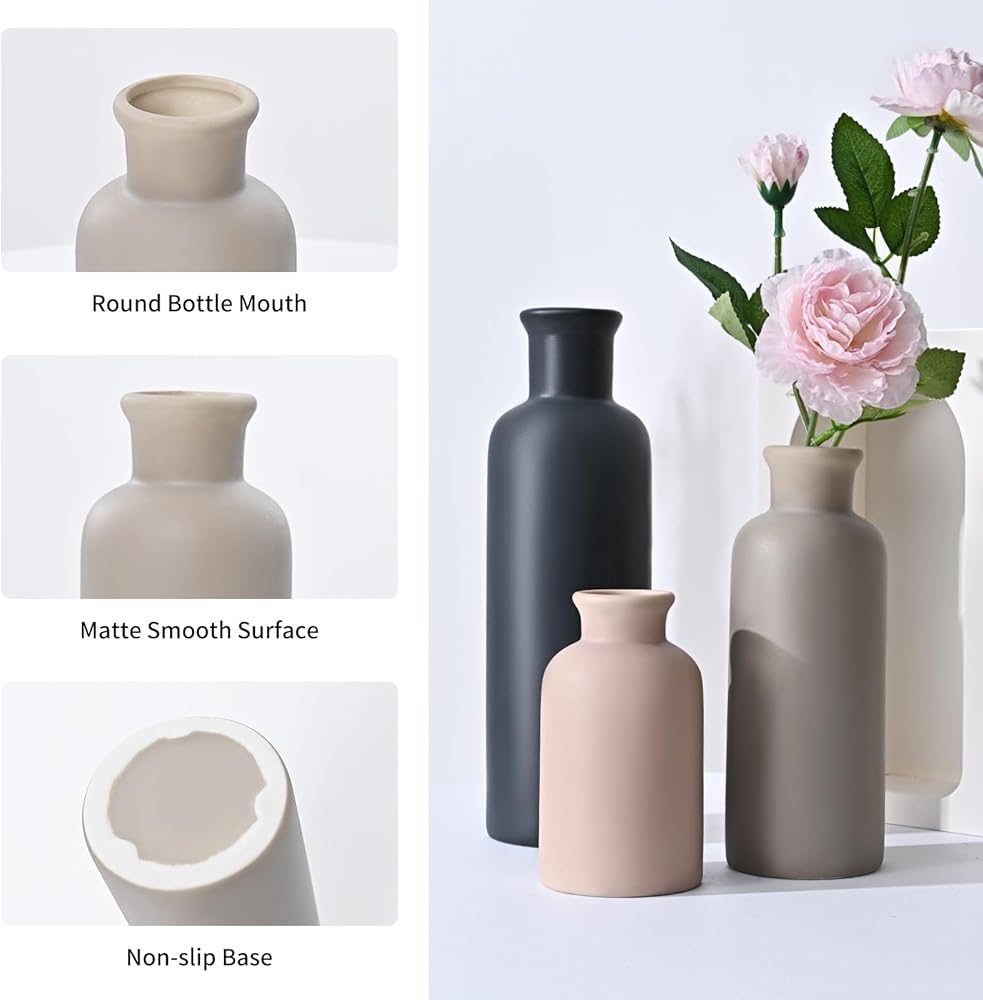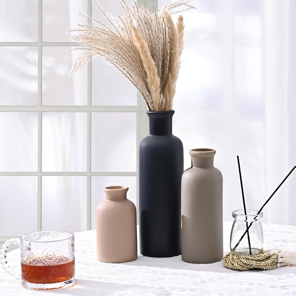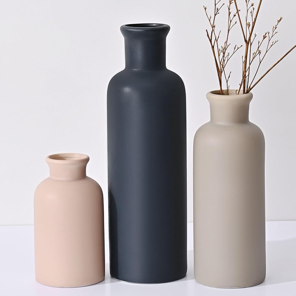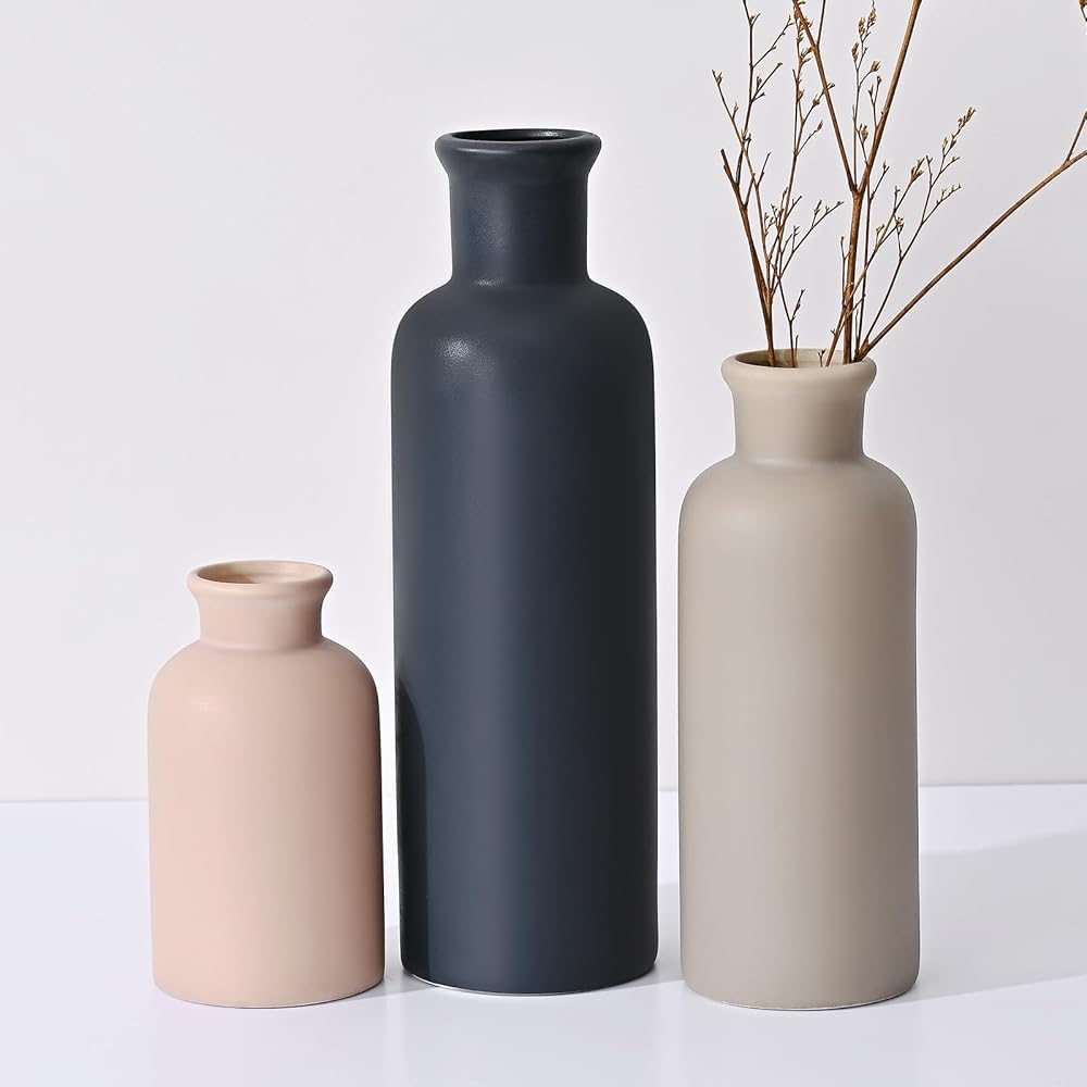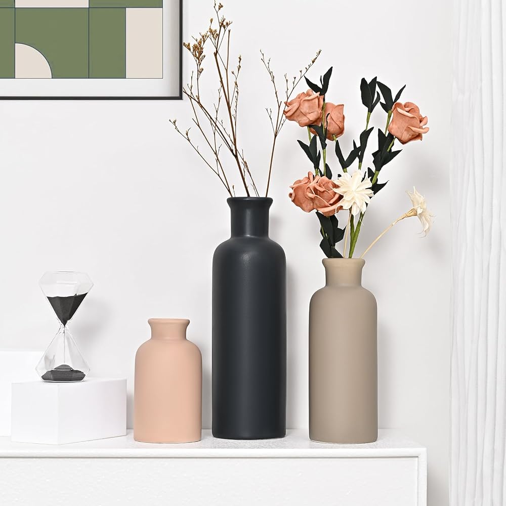 مجموعة مزهرية سيراميك مكونة من 3 قطع: تتضمن المجموعة 3 أحجام مزهرية مميزة (صغير، متوسط، كبير) مثالية لإنشاء ترتيبات متعددة الاستخدامات مع الزهور الطازجة أو الصناعية، أو الفروع، أو الوقوف بمفردها كديكور رف بسيط.