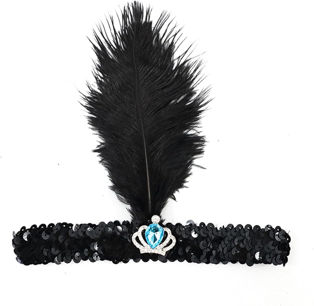 Halloween Sequins Feather Flapper Headband 1920s Carnival Party Headwear for Women Grils, Costume Flapper Headpiece Feather Headband for Gatsby Theme Part