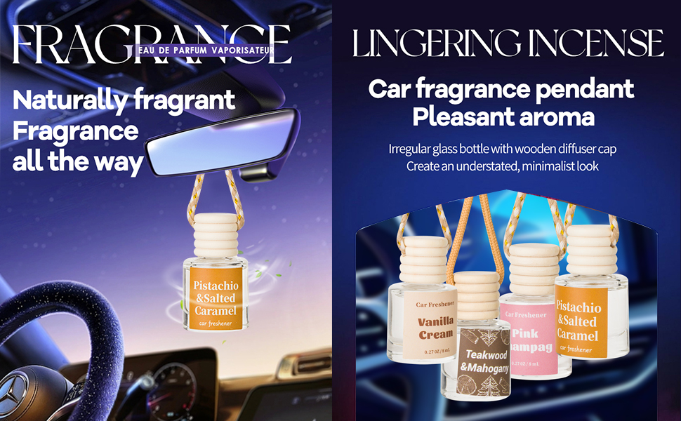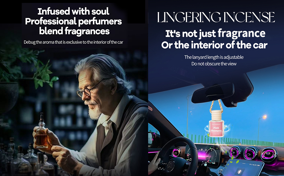 معطر الهواء ممزوج بمزيج العطور: يقدم معطر الهواء بروائح السيارات لدينا مجموعة واسعة من الروائح، بما في ذلك اللافندر والورد والبابونج والياسمين وزهر الكرز والأوسمانثوس والفستق والكراميل المملح والشمبانيا الوردية وخشب الساج والماهوجني وكريم الفانيليا. يمكنك اختيار روائح السيارة حسب تفضيلاتك وحالتك المزاجية.