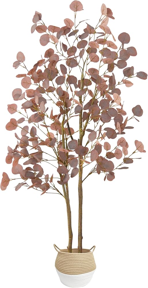 شجرة الأوكالبتوس الحمراء الصناعية بطول 5 أقدام مع وعاء أسود (قطر 6 بوصة، ارتفاع 5.1 بوصة) وسلة منسوجة مثالية. تحتوي هذه الشجرة على جذعين، مما يجعلها تبدو أكمل.