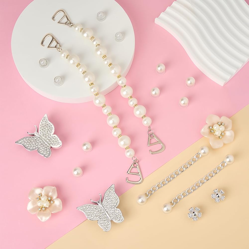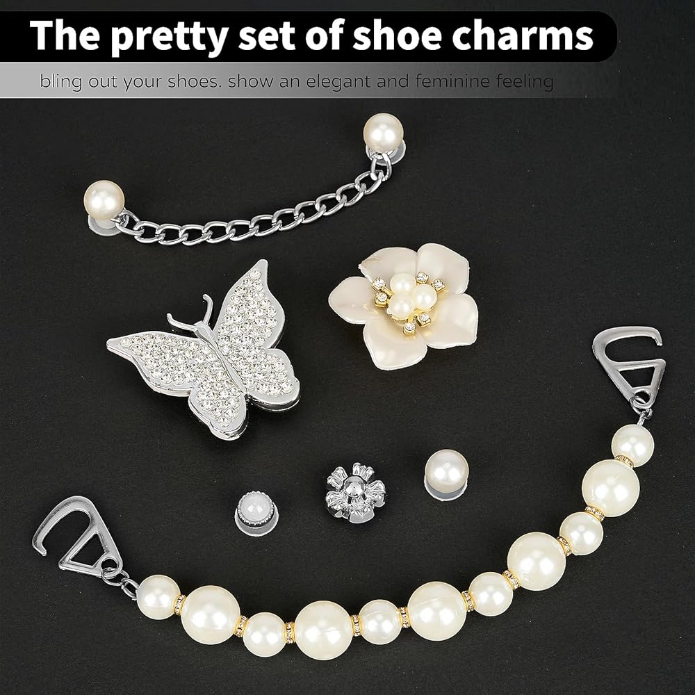 【سحر الأحذية اللامعة التي تصنعها بنفسك】 تتميز هذه الأحذية المتلألئة بمزيج من اللؤلؤ والزهور والفراشات وسلاسل اللؤلؤ. تم تصميم الحليات لإضافة لمسة من الأناقة والغرابة إلى حذائك. كل قطعة تميمة مزينة باللؤلؤ اللامع والزهور الرقيقة وزخارف الفراشة المعقدة، مما يخلق إكسسوارًا آسرًا وساحرًا.