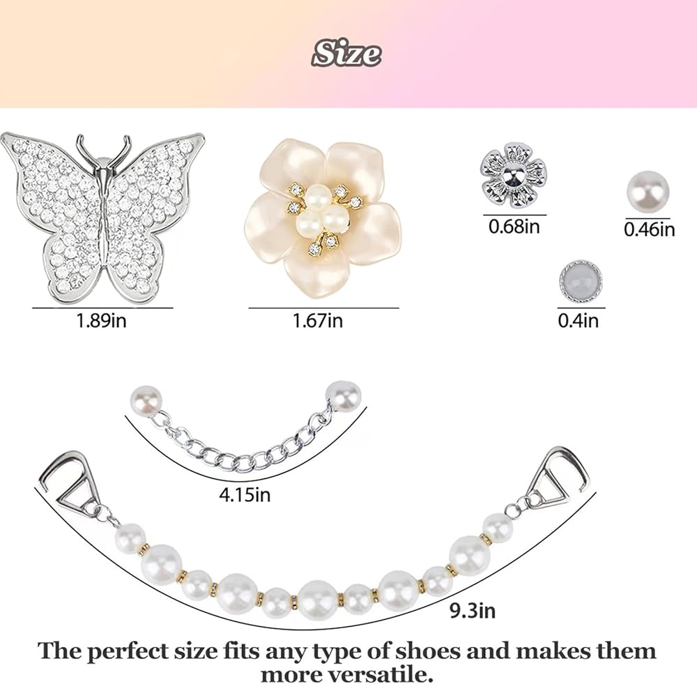 【مناسبة كهدية】عادةً ما تمنح عناصر التصميم لهذه الأحذية اللامعة الناس شعورًا بالأناقة والأنوثة. كما أن حليات الأحذية المستوحاة من اللؤلؤ مناسبة للمناسبات الخاصة أو المناسبات الرسمية، حيث يضيف تصميمها لمسة من الرقي والأناقة. سواء كانت هدية عيد ميلاد، أو هدية عطلة، أو أي مناسبة أخرى، يمكن لملحق الحذاء هذا أن يظهر اهتمامك وذوقك.