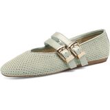 These Mary Jane flats for women feature woven raffia and a round toe design. With double buckle straps, they offer comfort and style for all-day walking and casual wear.
