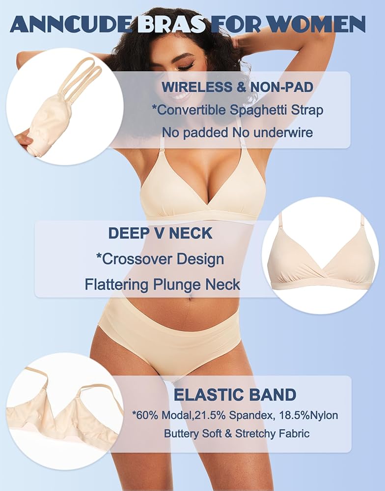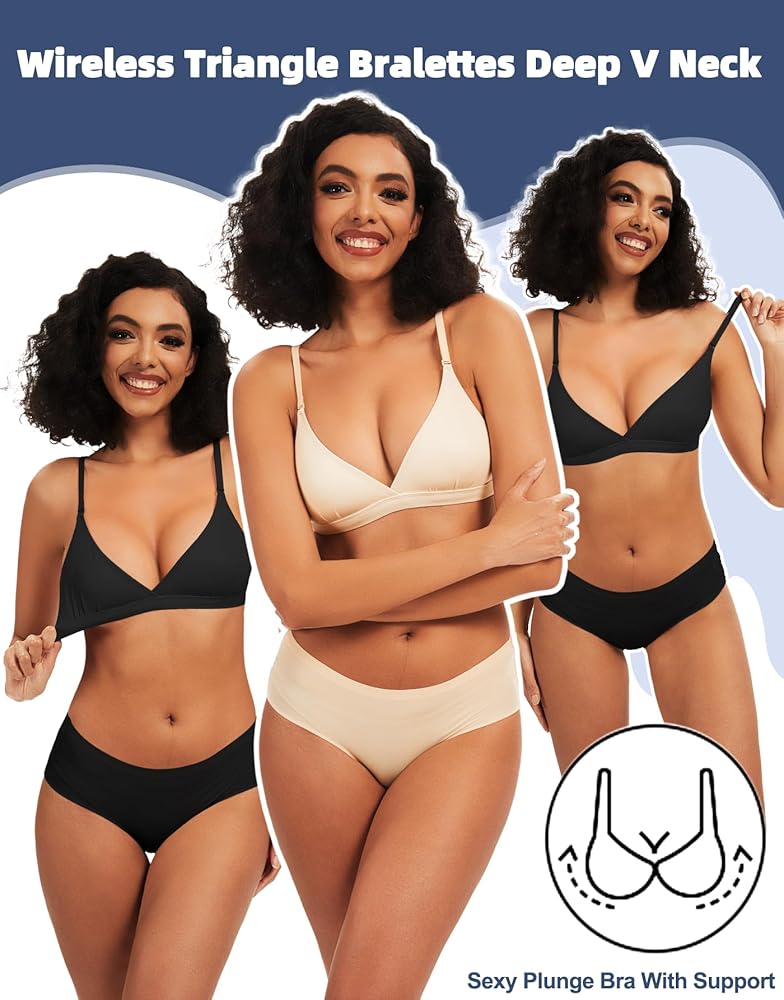 رقبة عميقة على شكل حرف V جذابة: تتميز بتصميم مثلث لاسلكي مع رقبة عميقة على شكل حرف V، توفر حمالة الصدر اللاسلكية صورة ظلية مثيرة للصدر وشكل طبيعي