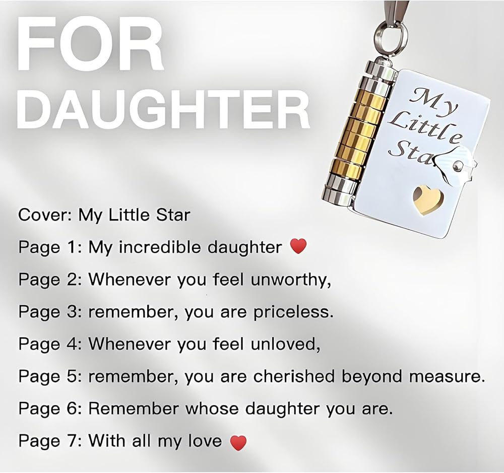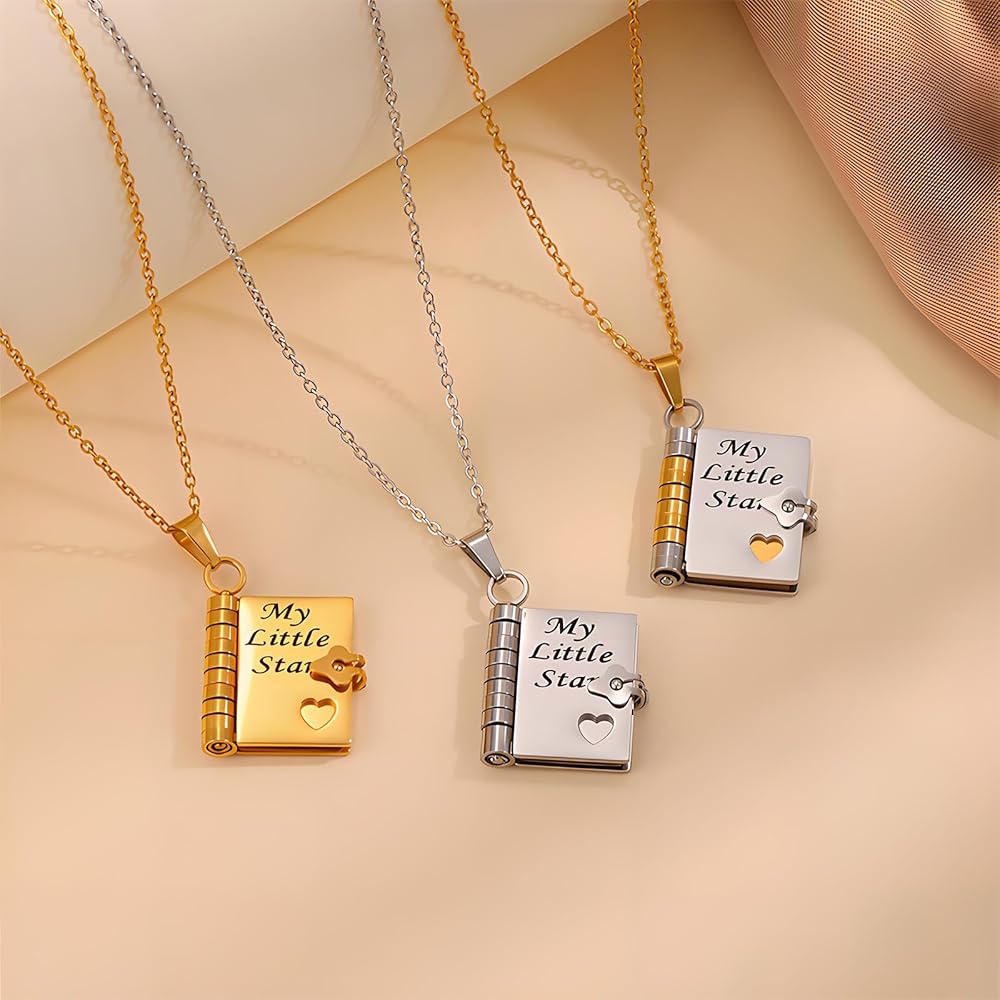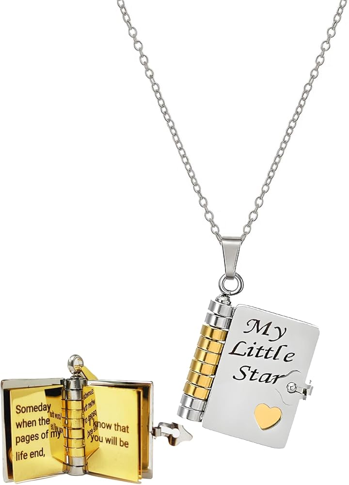 [هدايا الحفيدة من الجدة] - هذه القطعة الفريدة على شكل كتاب مصغر، تتيح لك إنشاء تذكار سيعتز به أحبائك إلى الأبد. تعتبر قلادة الحفيدة هذه هدية مدروسة ومشجعة للحفيدات من أجدادهم