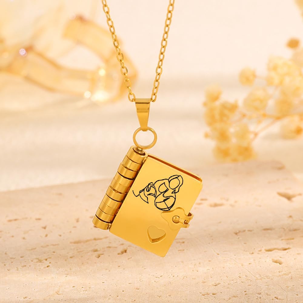[قلادات كتب مخصصة للنساء] - تصميم القلادة مستوحى من الكتاب الحقيقي في الحياة، يمكنك في الواقع فتح القلادة مثل كتاب حقيقي. قلادة حفيدتنا الفريدة من نوعها مع حروف محفورة بشكل فردي. سوف يعيد ذكريات سعيدة عندما تستخدمه في كل مرة