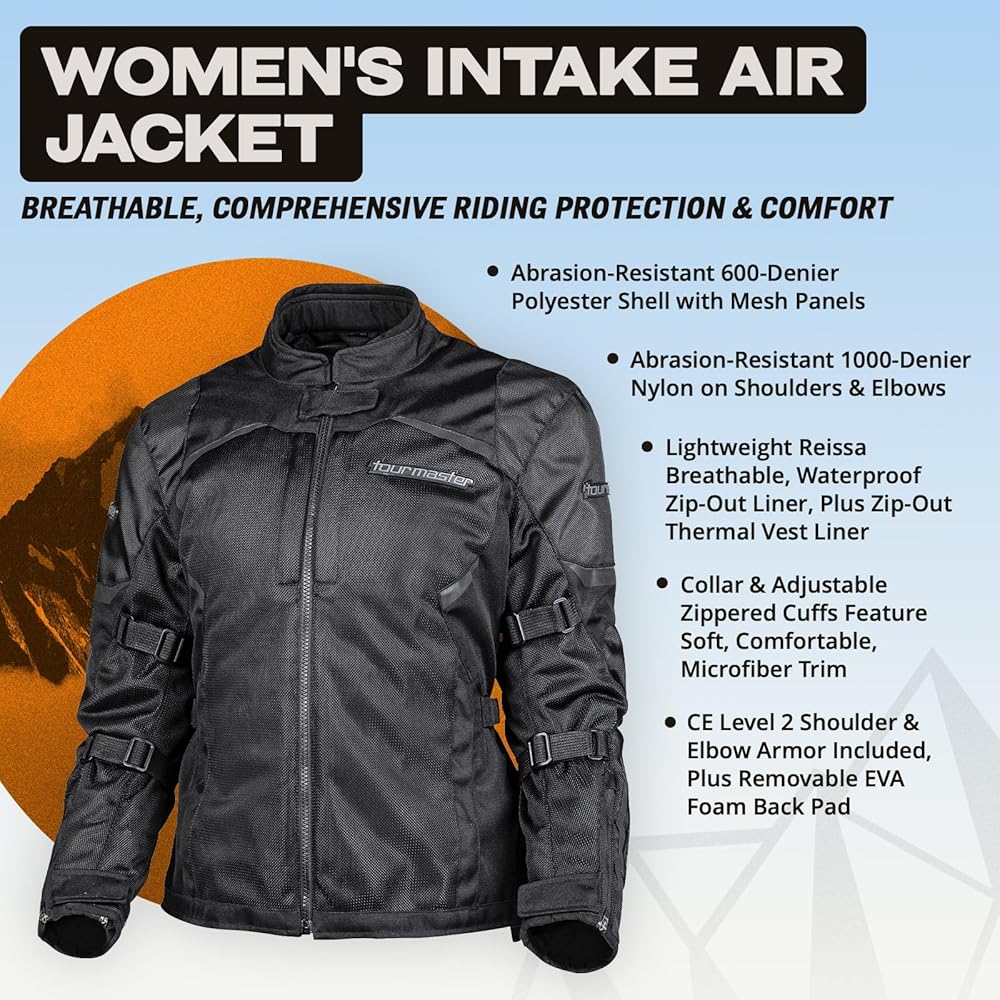 تدفق هواء ومتانة فائقين: تتميز سترة Tourmaster النسائية للدراجات النارية بغطاء بوليستر 600D مقاوم للتآكل مع ألواح شبكية، مما يوفر تهوية ممتازة مع ضمان متانة طويلة الأمد.