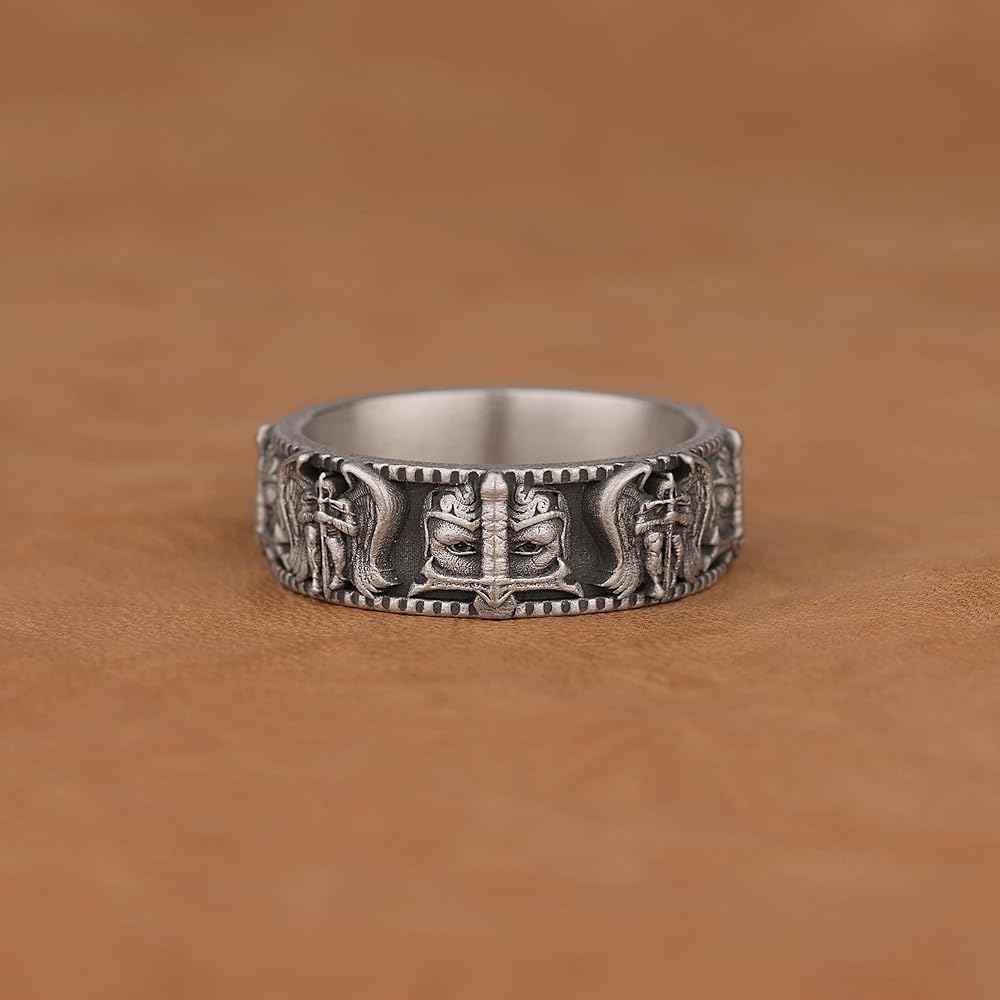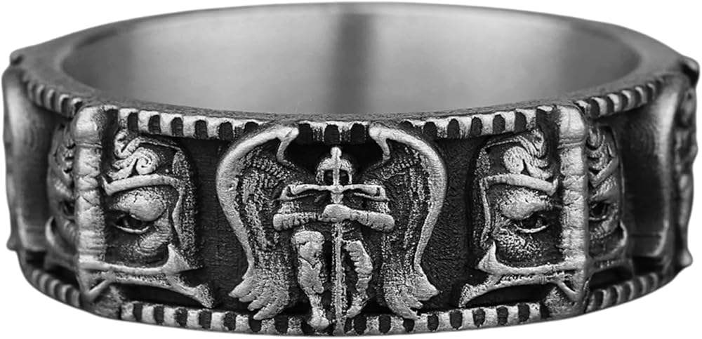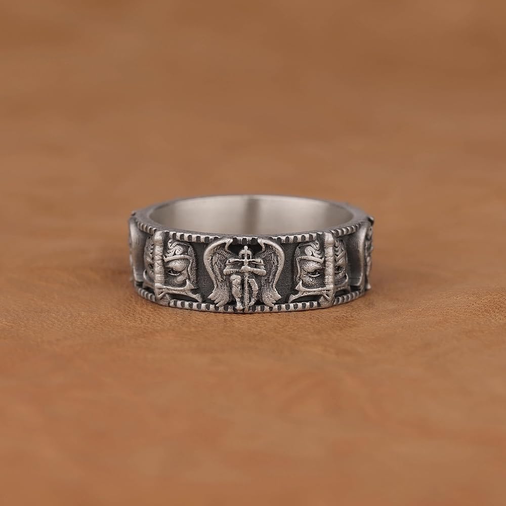 خاتم سانت مايكل رئيس الملائكة للرجال، خواتم دينية مؤكسدة للزوج، خاتم رجالي مصنوع يدويًا من الفضة الإسترليني، هدية ذات مغزى له