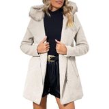 معطف Bellivera النسائي للخريف والشتاء أنيق ذو طية صدر مدببة ومعطف واق من المطر بصدر واحد مع ياقة من الفرو الصناعي قابلة للفصل in Kuwait