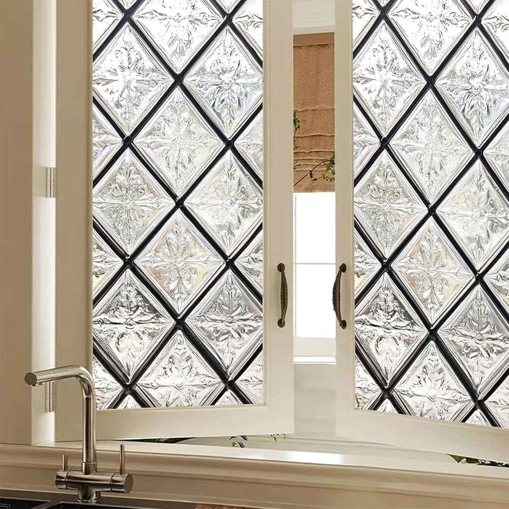 لاصق النوافذ المزخرف بتصميم كلاسيكي: مستوحى من بلاط القصدير العتيق والكتل الزجاجية، يناسب لاصق النوافذ المزخرف هذا الديكورات الداخلية التقليدية أو الانتقالية.