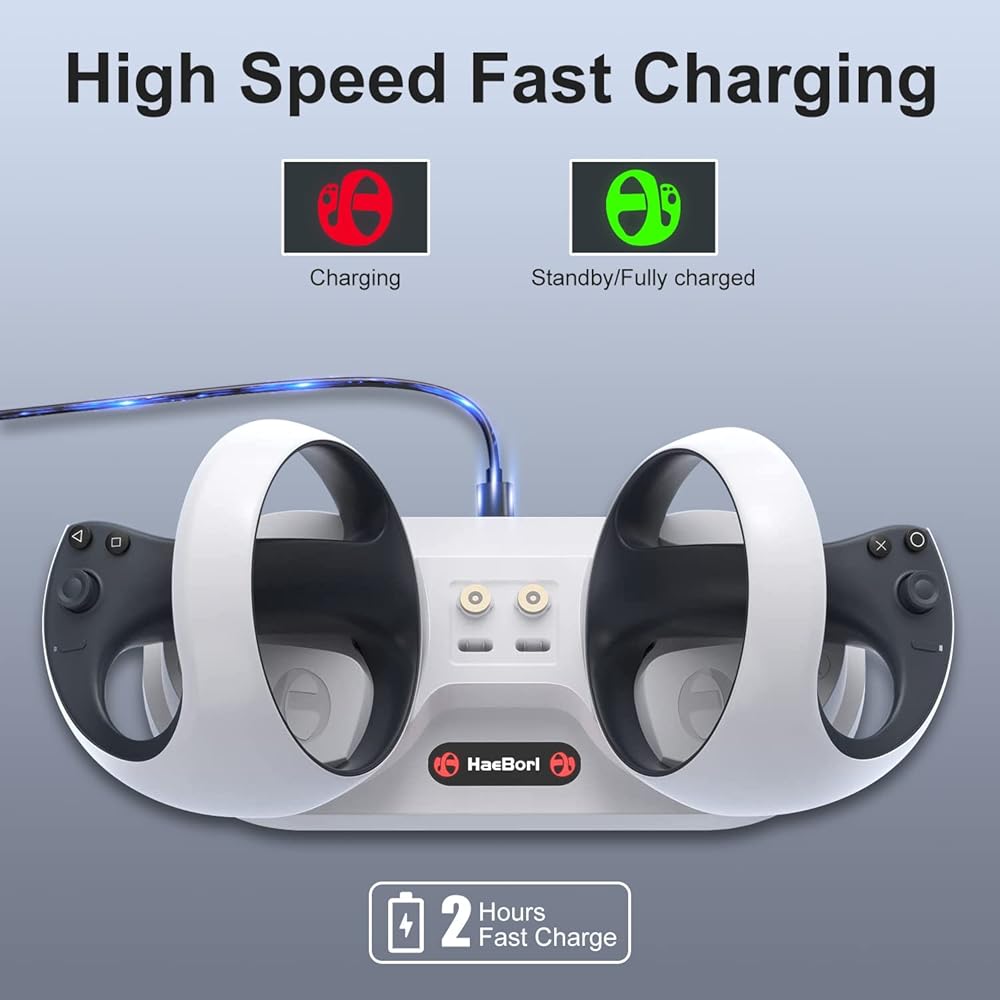 【قاعدة شحن PSVR 2 السريعة】تم تصميم شاحن وحدة التحكم PSVR 2 خصيصًا لشحن وحدتي تحكم PSVR في نفس الوقت. مجموعة شاحن PSVR 2 هذه هي أفضل بديل لقاعدة الشحن الرسمية
