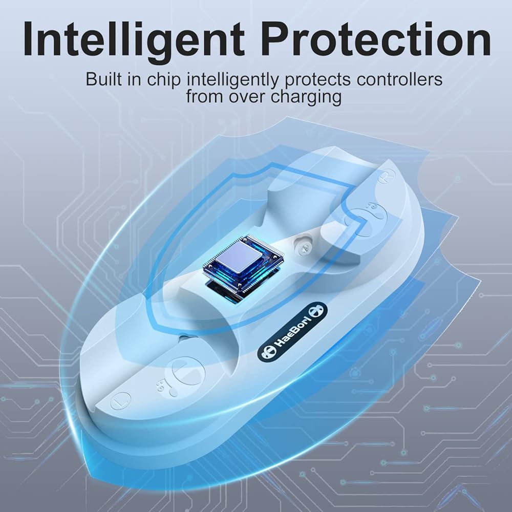 【شحن آمن وحماية ذكية】ساعتان لشحن وحدة التحكم PSVR2 بالكامل، قاعدة شحن PS VR2 هذه عبارة عن شريحة ذكية مدمجة، والتي يمكنها حماية وحدات التحكم PSVR2 من الشحن الزائد والجهد الزائد والحرارة الزائدة وقصر الدائرة. يمكن لمادة الشفط الدقيقة الموجودة على منفذ الشحن تأمين وحدة التحكم بإحكام وحماية سلامة وحدة التحكم في ار 2.